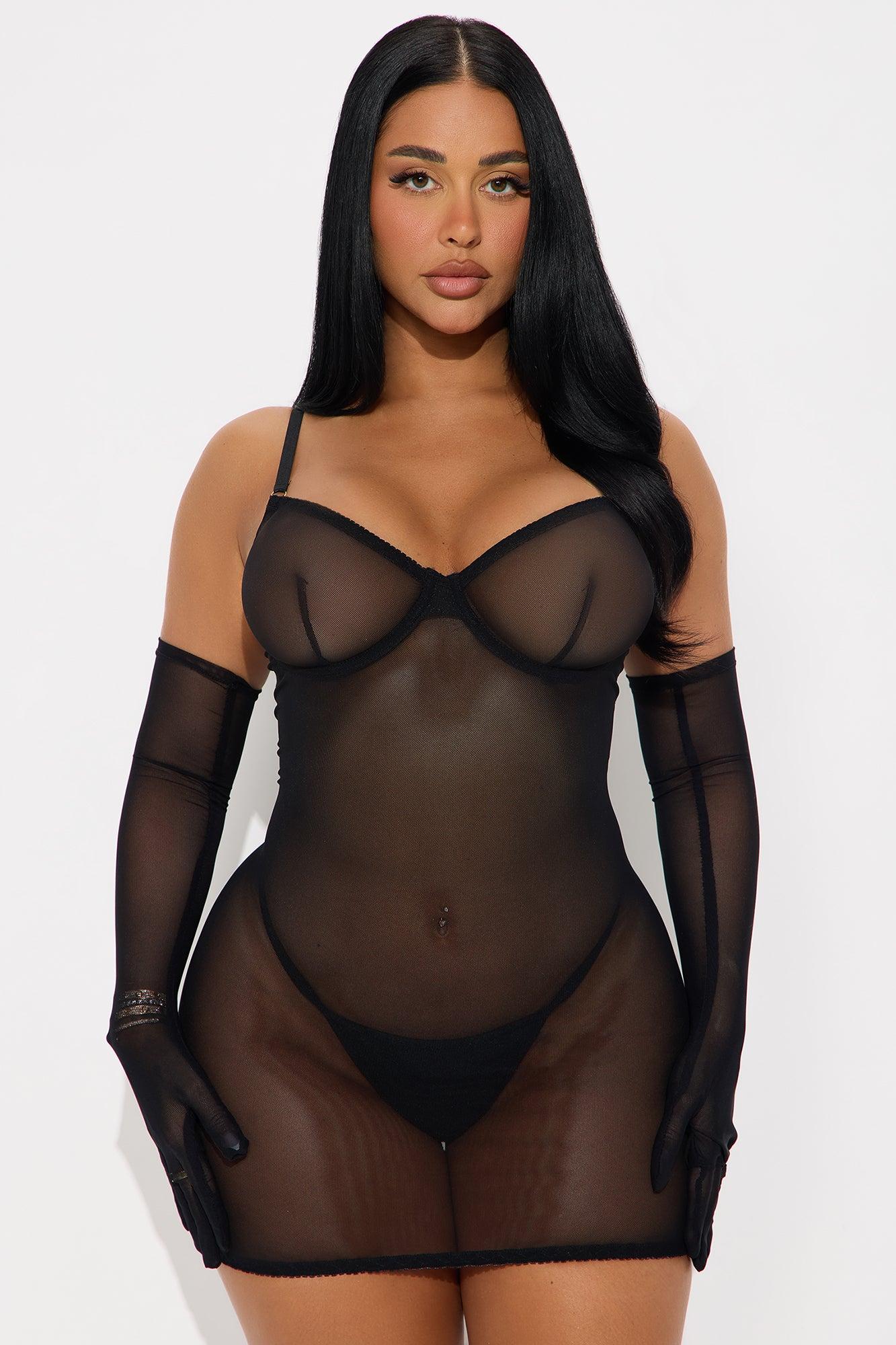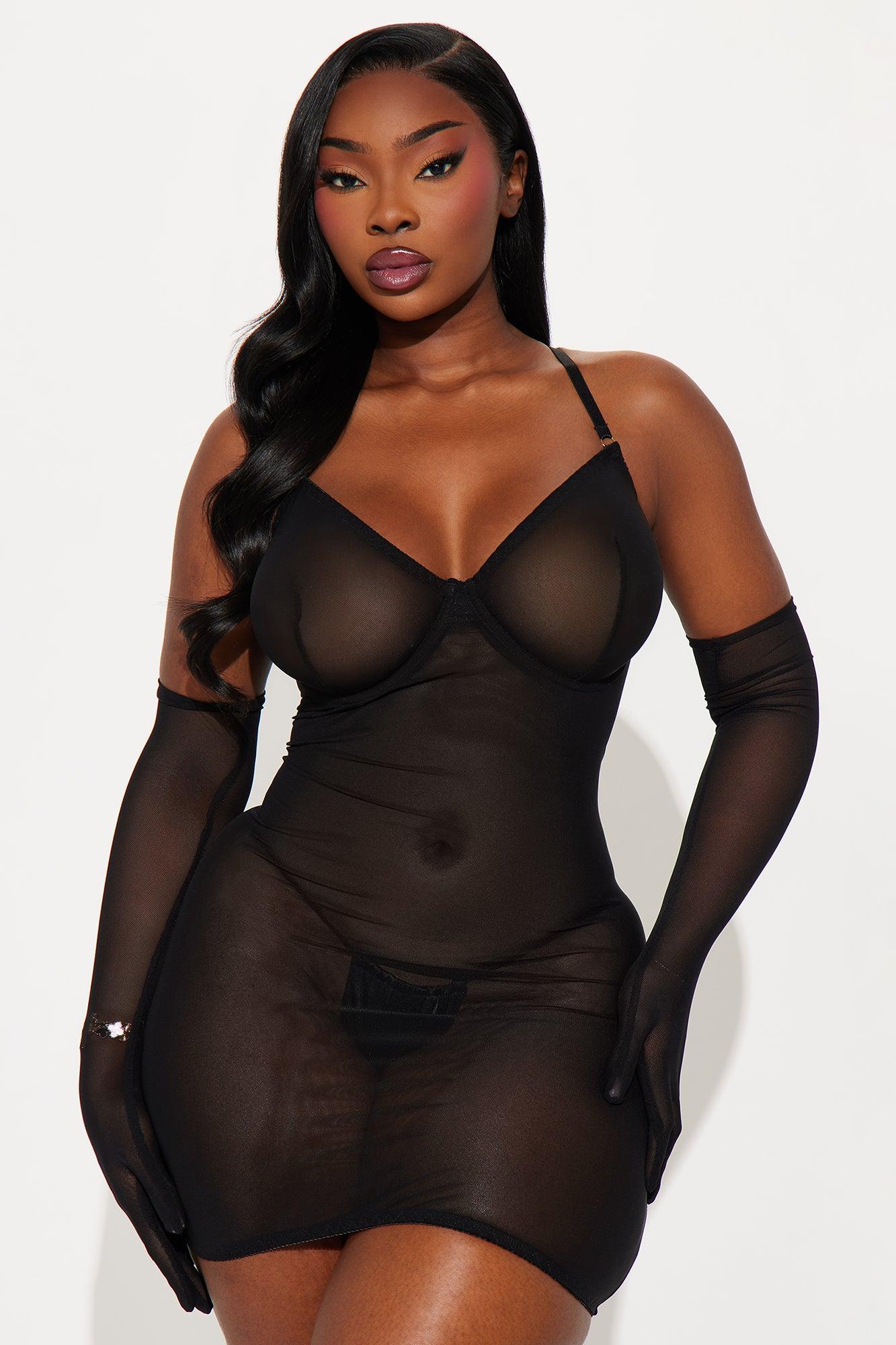 Harley Mesh Chemise Dress With Gloves - Black Female