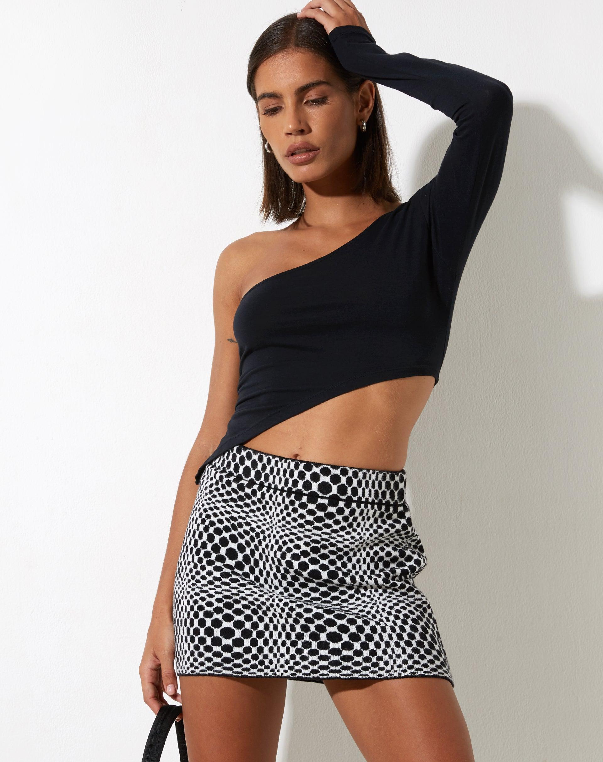 For a stand out skirt, our Haru is the one. Featuring a bodycon mini fit in a black and white optic square print. For a matching co-ord team with our Laria top. MODEL WEARS:XS - MODEL HEIGHT:5'6 - FABRIC CONTENT: 50%VISCOSE 28%NYLON 22%POLYESTER