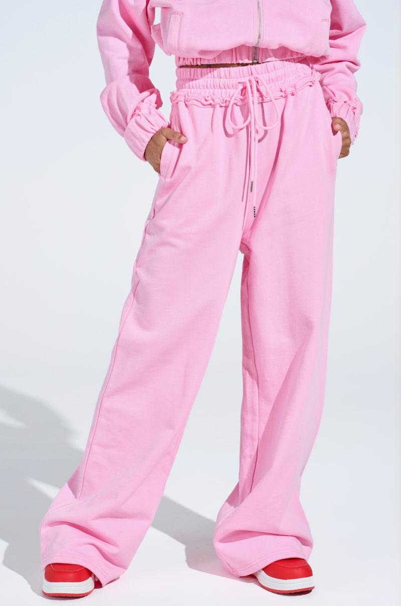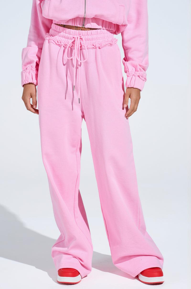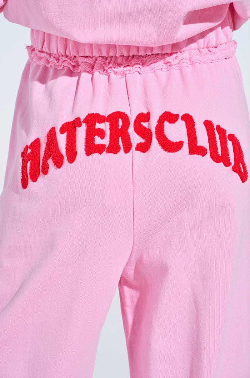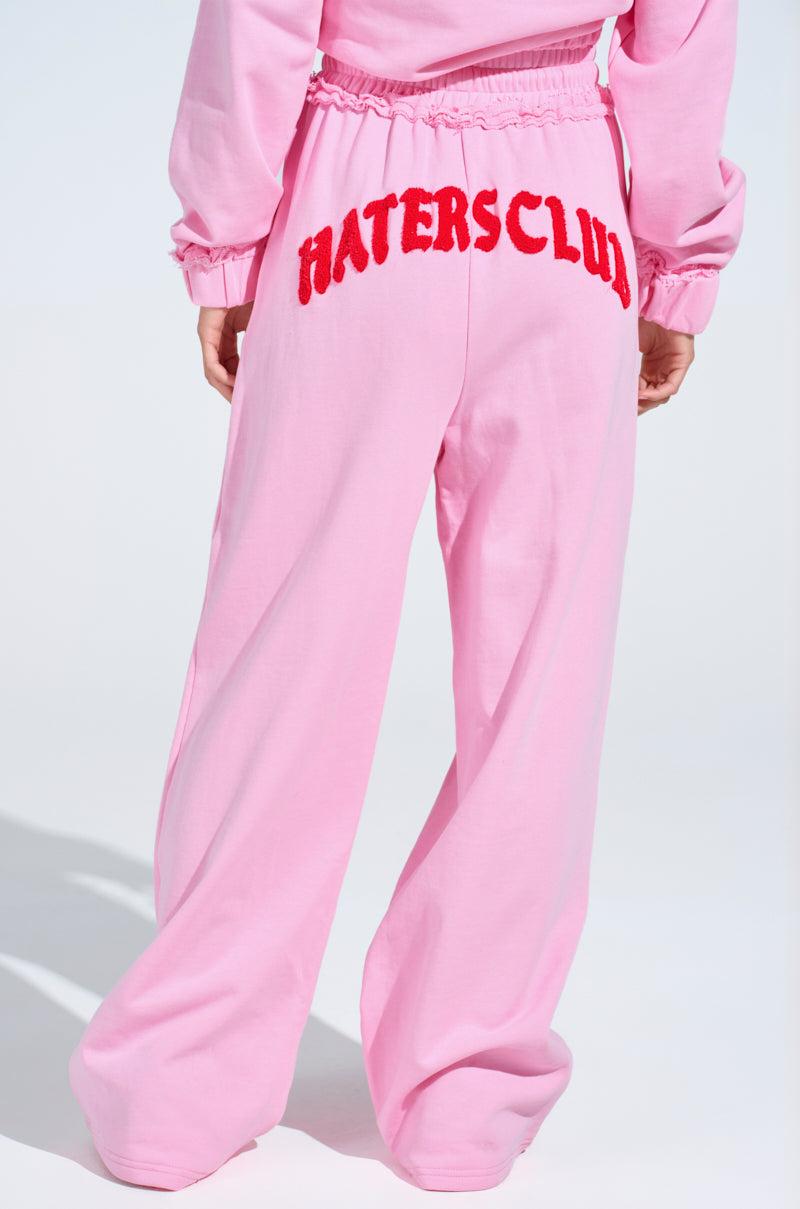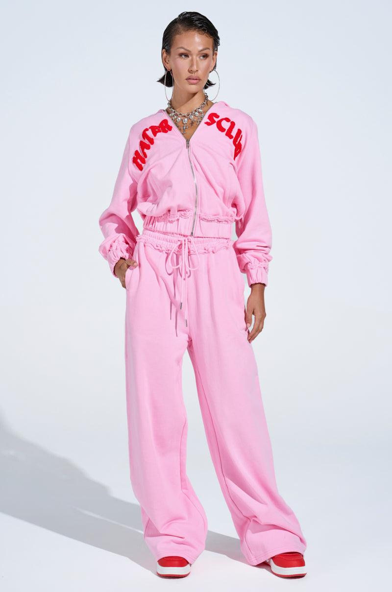 Mode: Unbothered in The AKIRA Label Haters Club Wide Leg Jogger. Crafted from soft cotton, these ultra-comfy sweats feature a high-rise fit, a shirred elastic waistband with adjustable drawstring closures, and side slant pockets for convenience. The embroidered "Haters Club" in a bold poppy red adds a sassy, textured touch across the rear. With a relaxed wide-leg silhouette and an easy pull-on fit, these joggers are the perfect blend of comfort and attitude. Pair with the matching AKIRA Label Haters Club Zip-Up Hoodie and sherpa slides for an effortlessly cool, lounge-ready look. - 100% Cotton- Hand Wash Cold- Little Stretch- Imported (all measurements approximate from size small)- 14” Rise- 30” Inseam- Model is 5’7” and is wearing size smallProduct ID: 1040492 (all measurements approximate from size 1X)- 15” Rise- 30” InseamProduct ID: 1040496