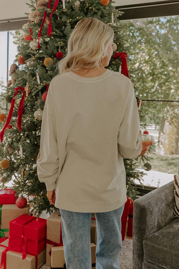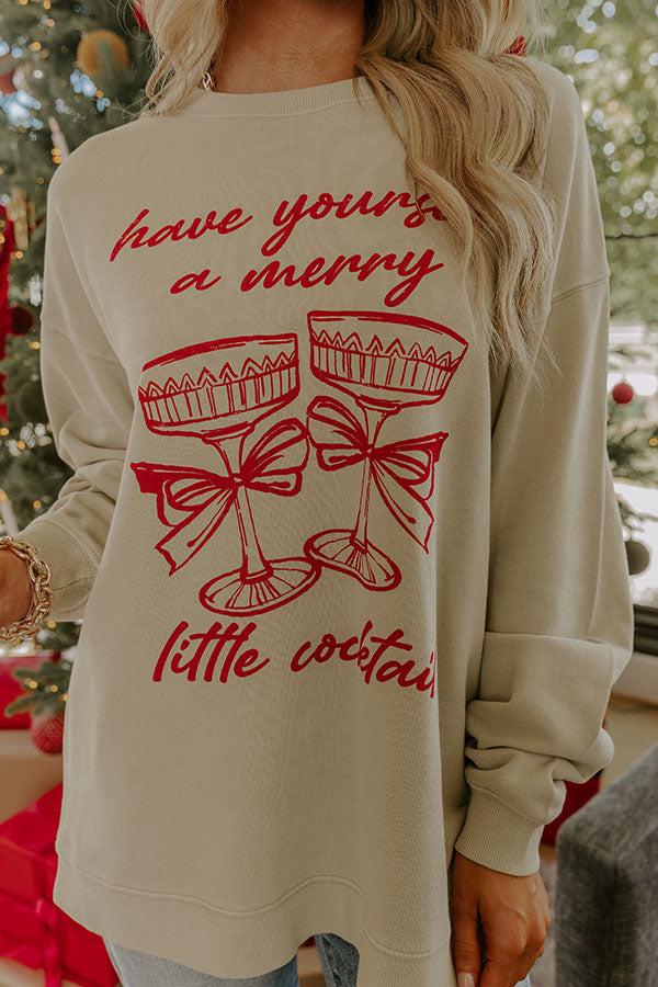 - This adorable graphic sweatshirt is all about bringing holiday cheer! Its playful design makes it the cutest pick for spreading festive vibes. - Unlined 100% cotton material - A red hued "have yourself a merry little cocktail" graphic design on the front - A crew cut neckline - Long sleeves with ribbed cuffs - A relaxed silhouette that ends in a ribbed hem