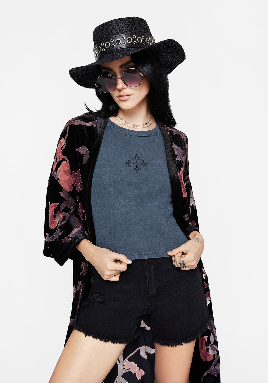 Haven Cross Embroidered Ribbed Cotton Tank Top