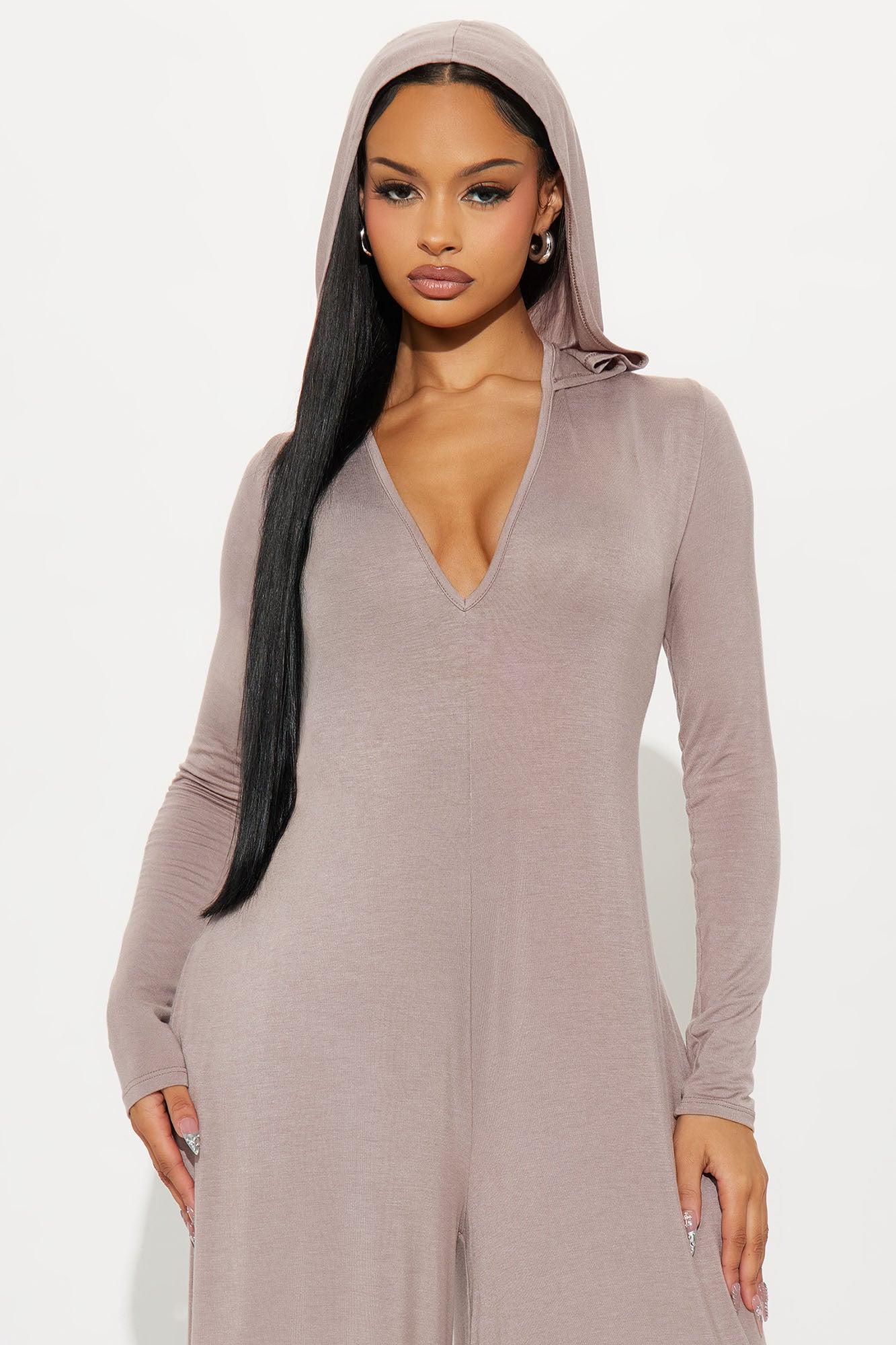 Haven Hooded Wide Leg Long Sleeve Jumpsuit - Mocha Female