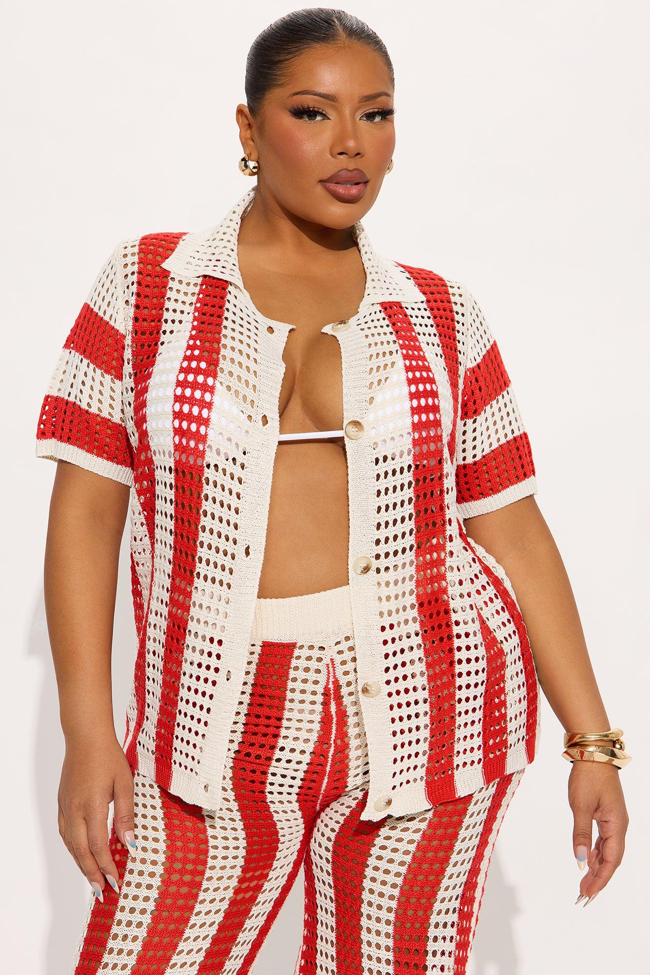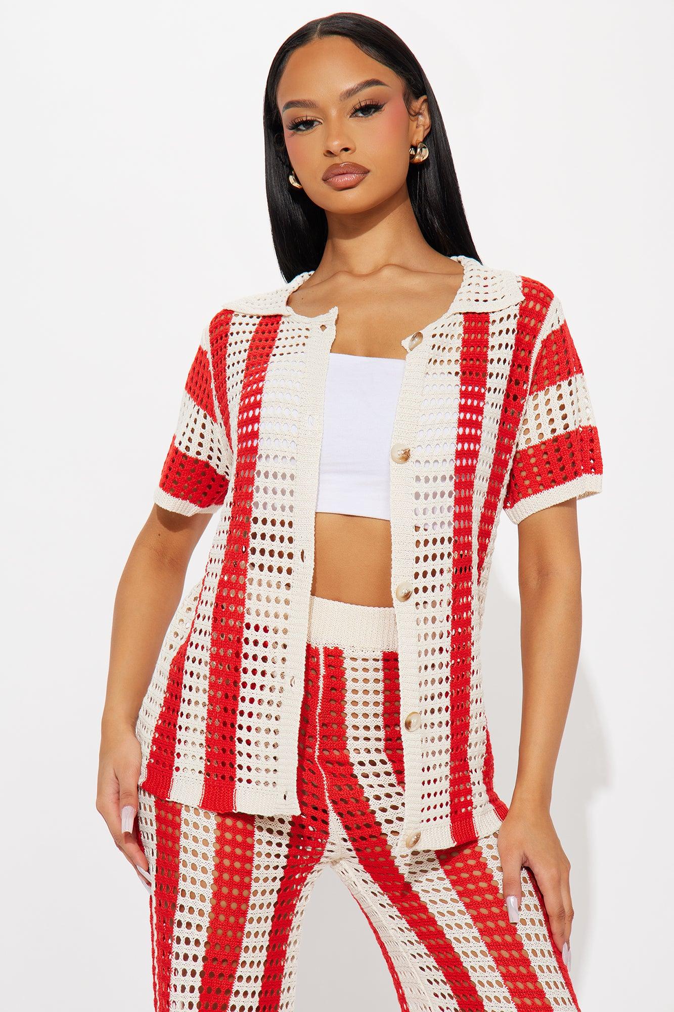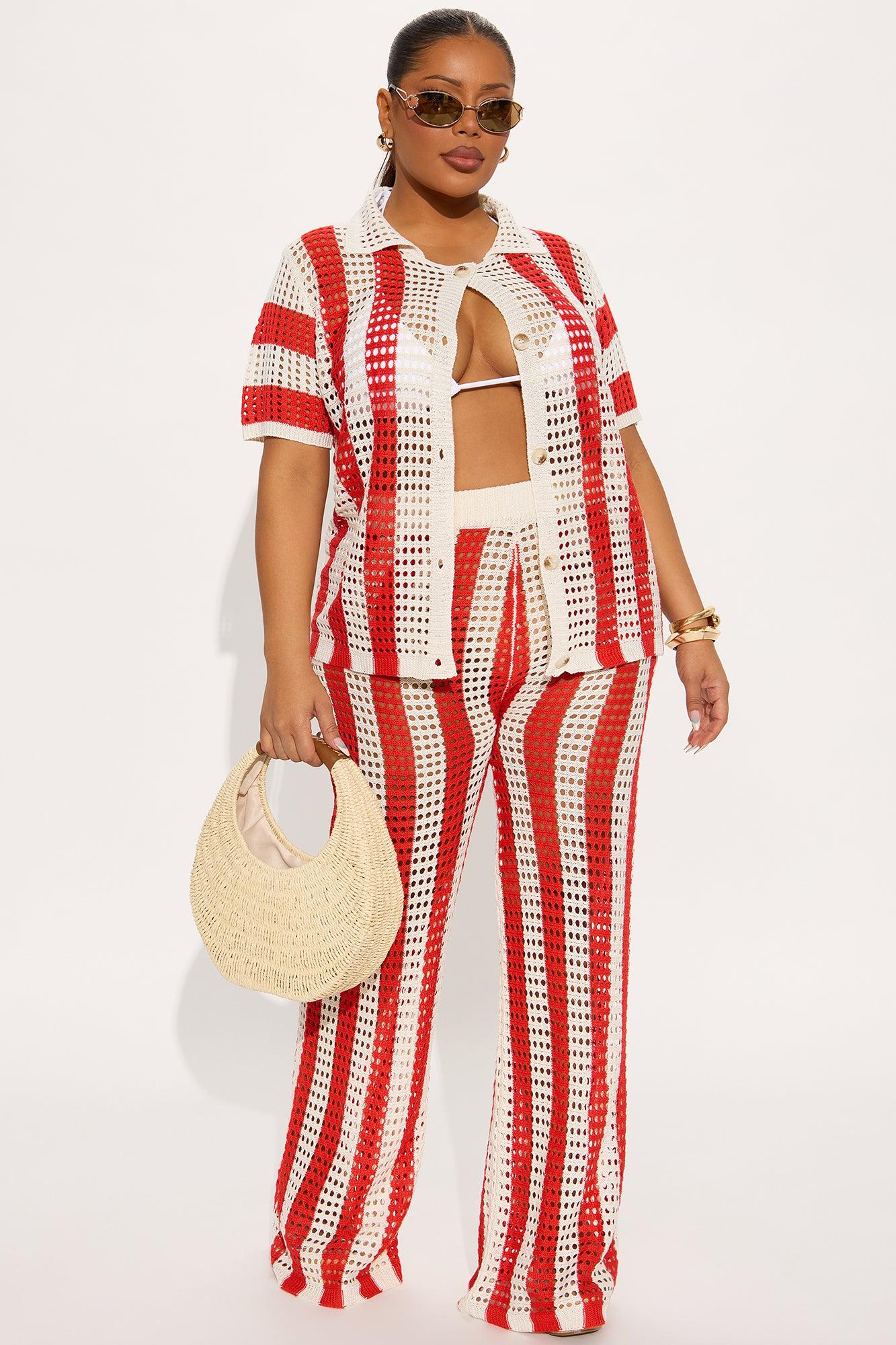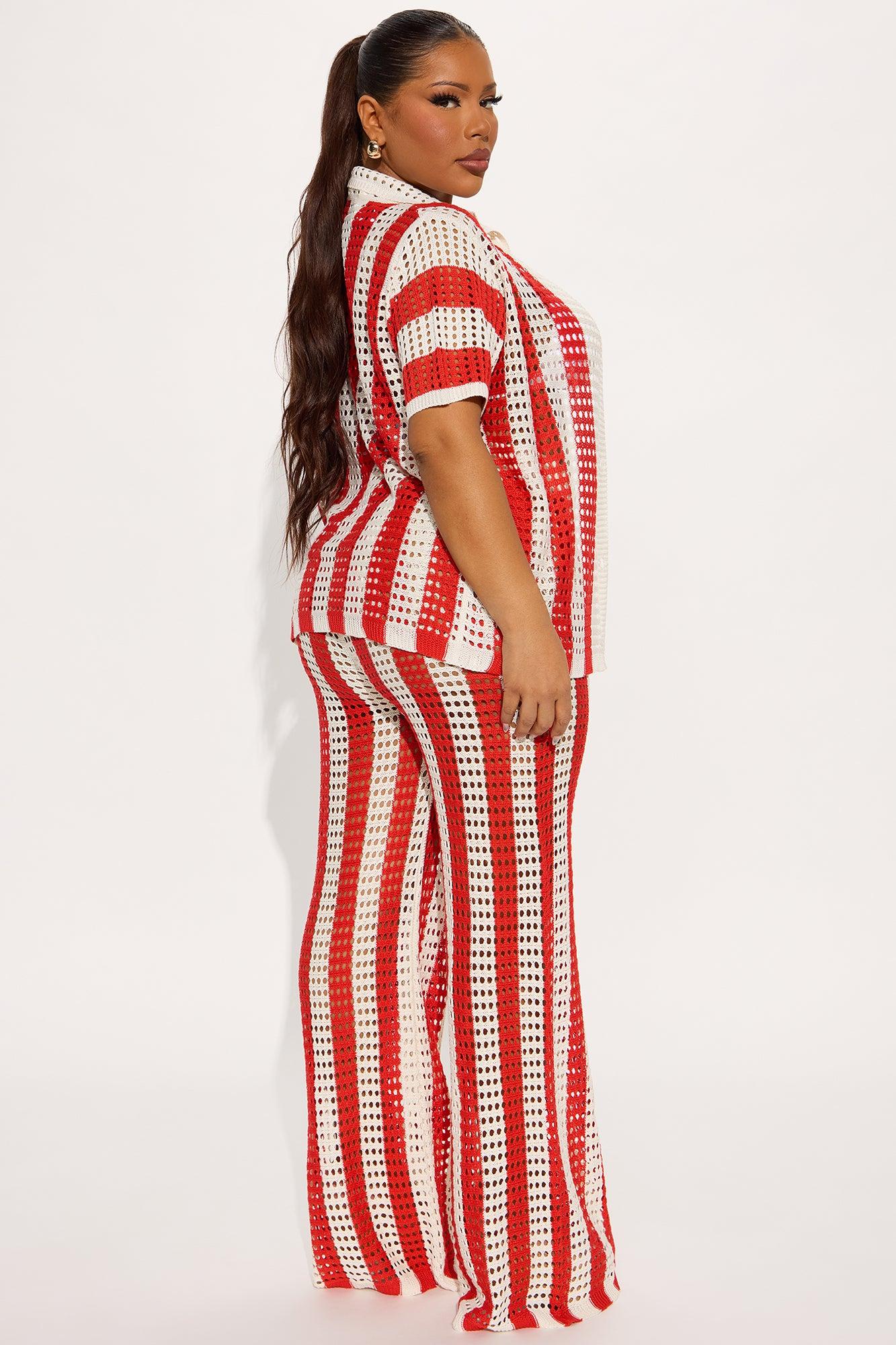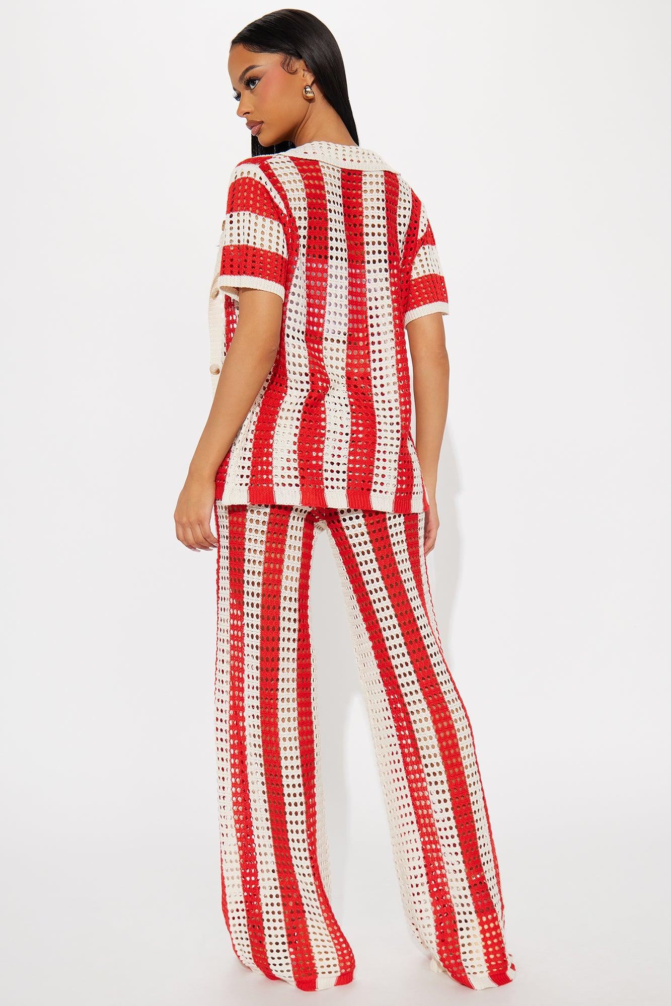 Hayden Crochet Pant Set - Red/combo