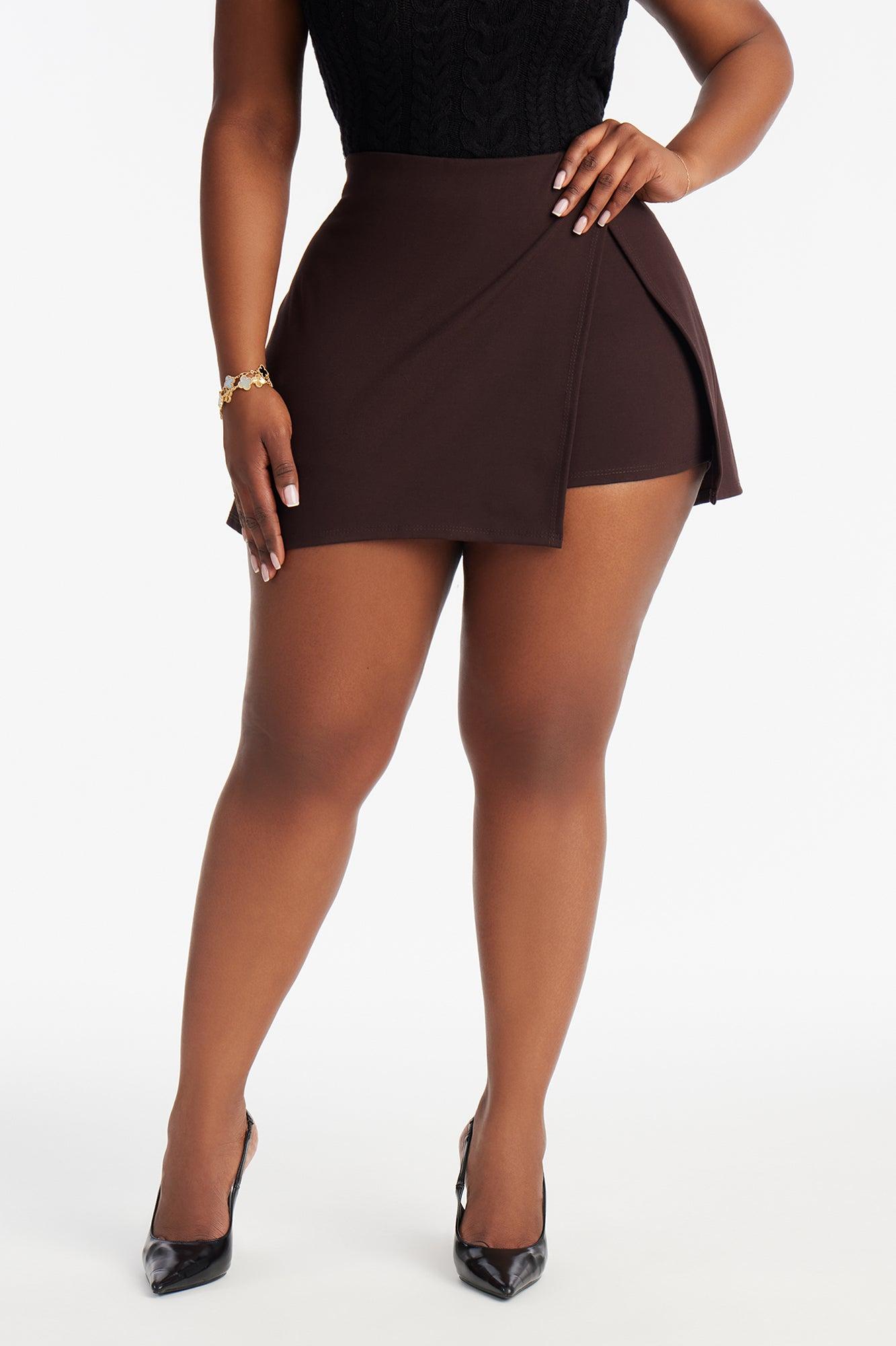 Hayden Front Slit Ponte Mini Skort - Chocolate Female