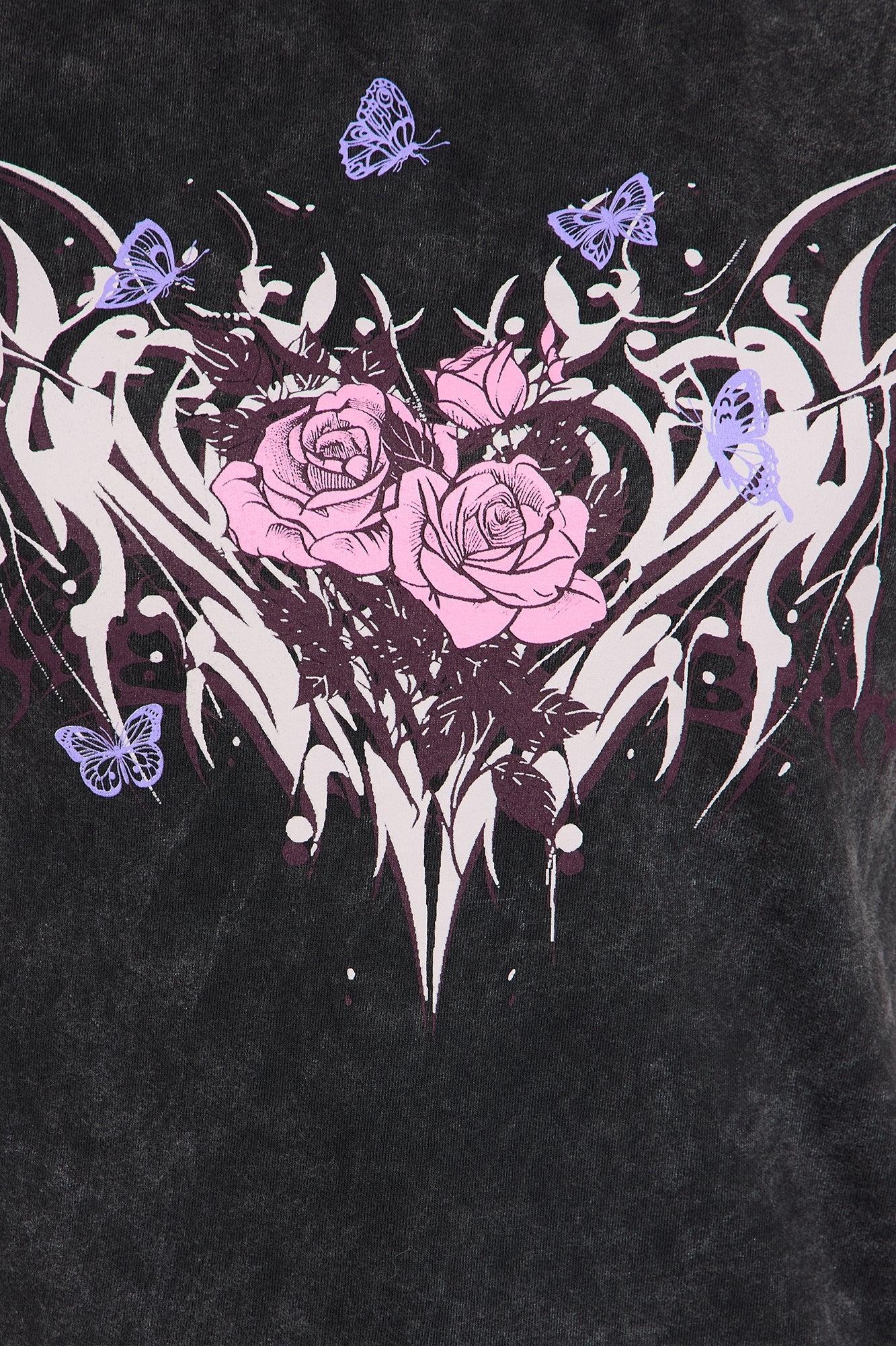 Heart Barbed Wire Washed Tee - Black Female