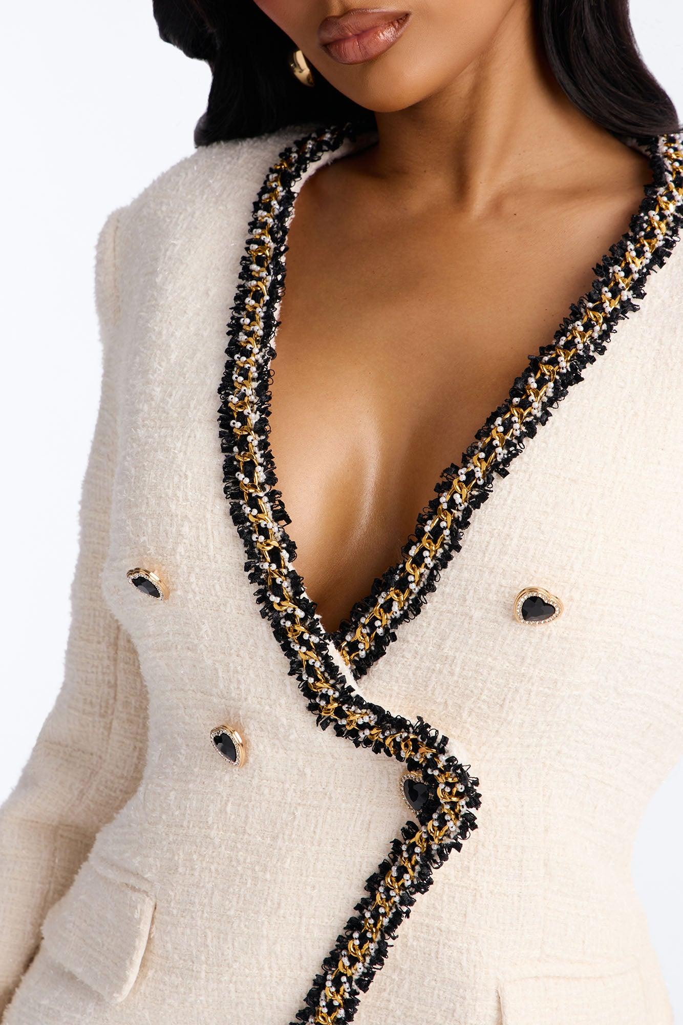 Heart Me Tweed Long Sleeve Romper - Cream/combo Female