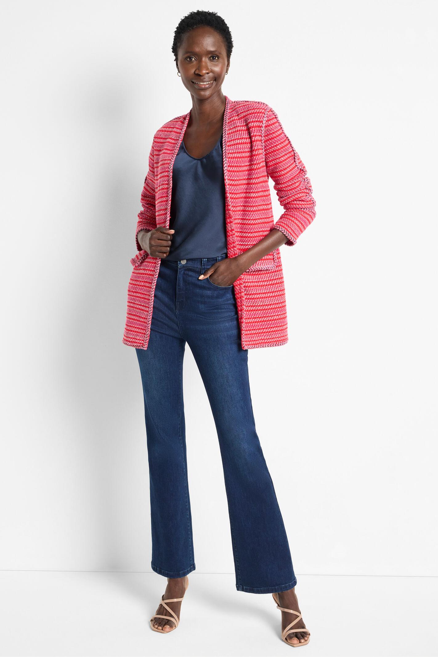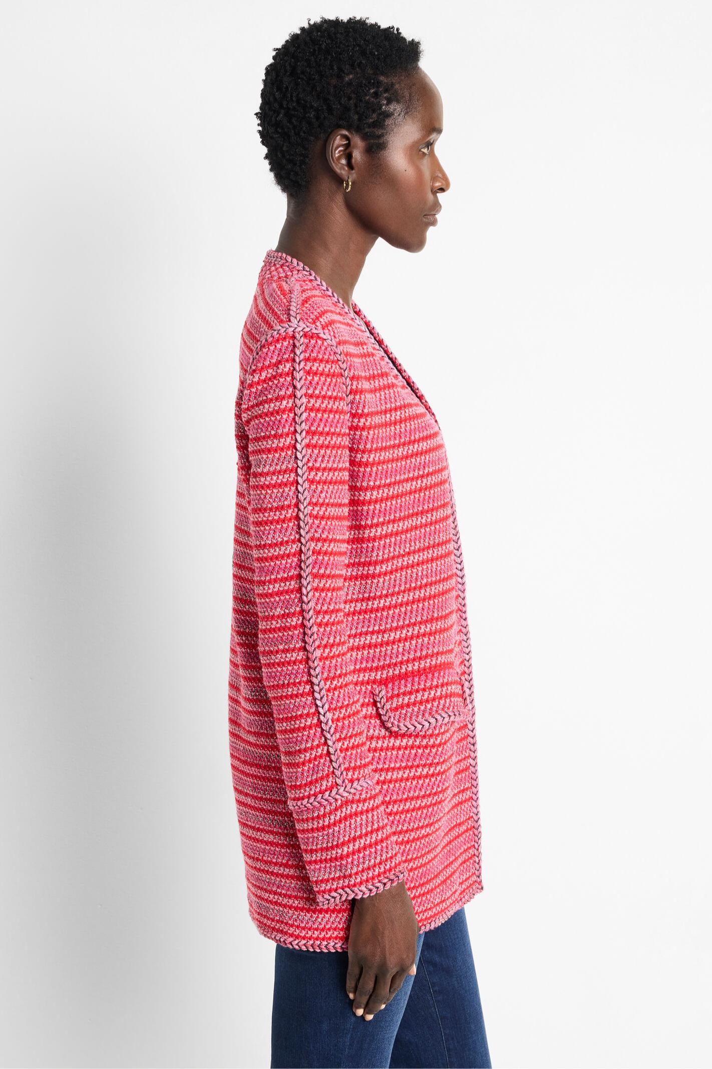 The Heat Clash Cardigan redefines chic layering with its soft yarns from our ICO(NIC) Fringe Mix and its unmistakable long silhouette. Designed as a longer jacket piece, it features novelty braiding along the seams and placket for a unique, elevated touch. Complete with a single hook-and-eye closure, flap pockets, and a styled V-neck, this midweight cardigan offers effortless polish and versatility. Sits slightly below the hip.