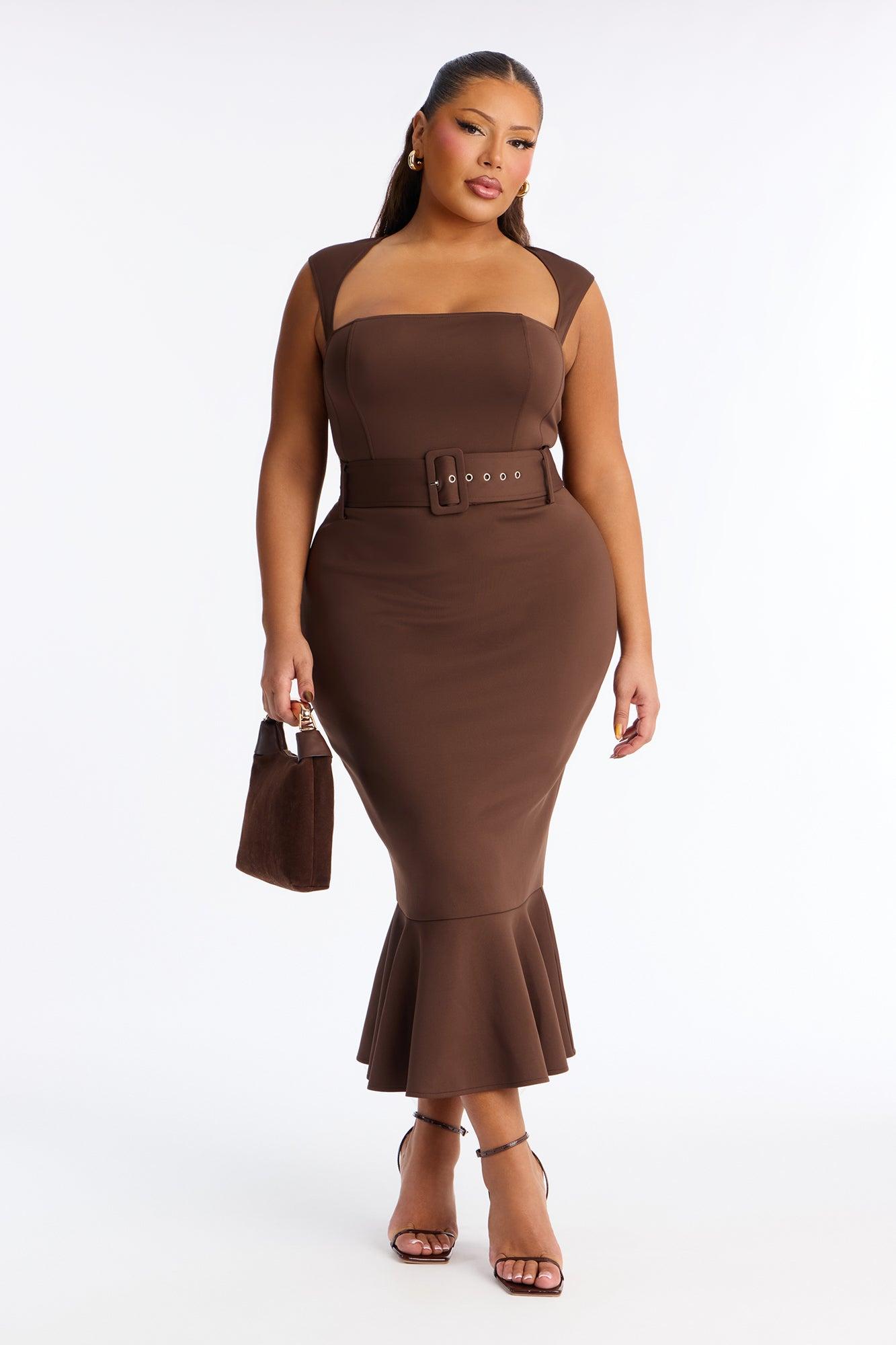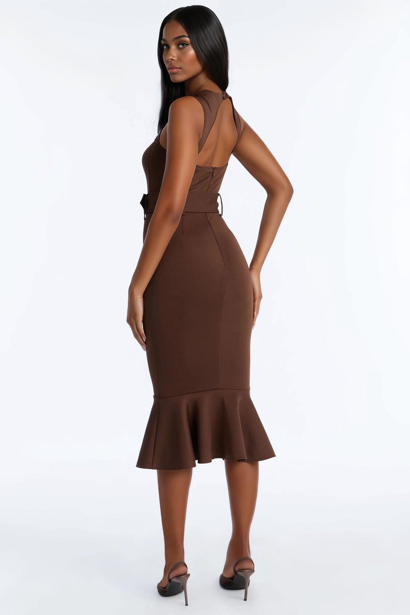 Heather Belted Mermaid Midi Dress - Chocolate Female
