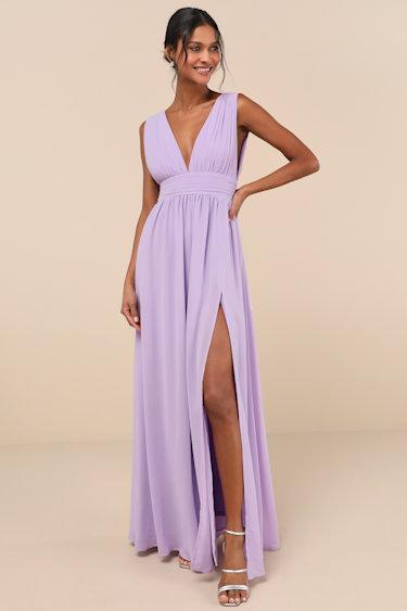 Living on goddess timeAiry woven chiffon effortlessly drapes from a sleeveless bodice with a plunging neckline and a gathered, banded waist. A thigh-high side slit emphasizes the elegant movement of the A-line maxi skirt. Hidden back zipper/clasp.