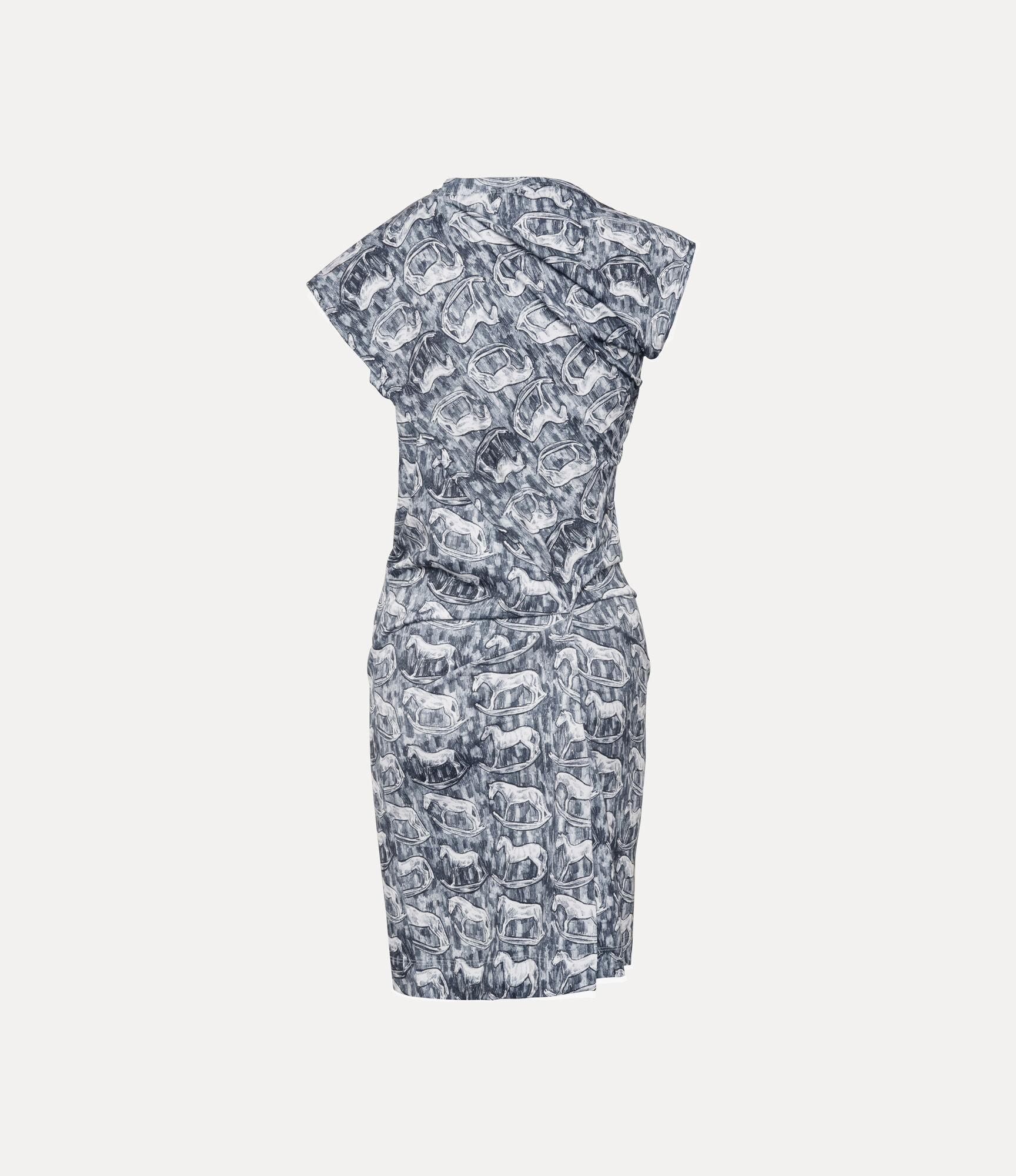 Our Hebo dress is decorated with the archival 'Rocking horse' motif, a nod to the Year of the Horse. Designed with an asymmetric neckline and subtle drape detailing, the piece features short, angled cap sleeves and falls into a straight, knee-length hemline.