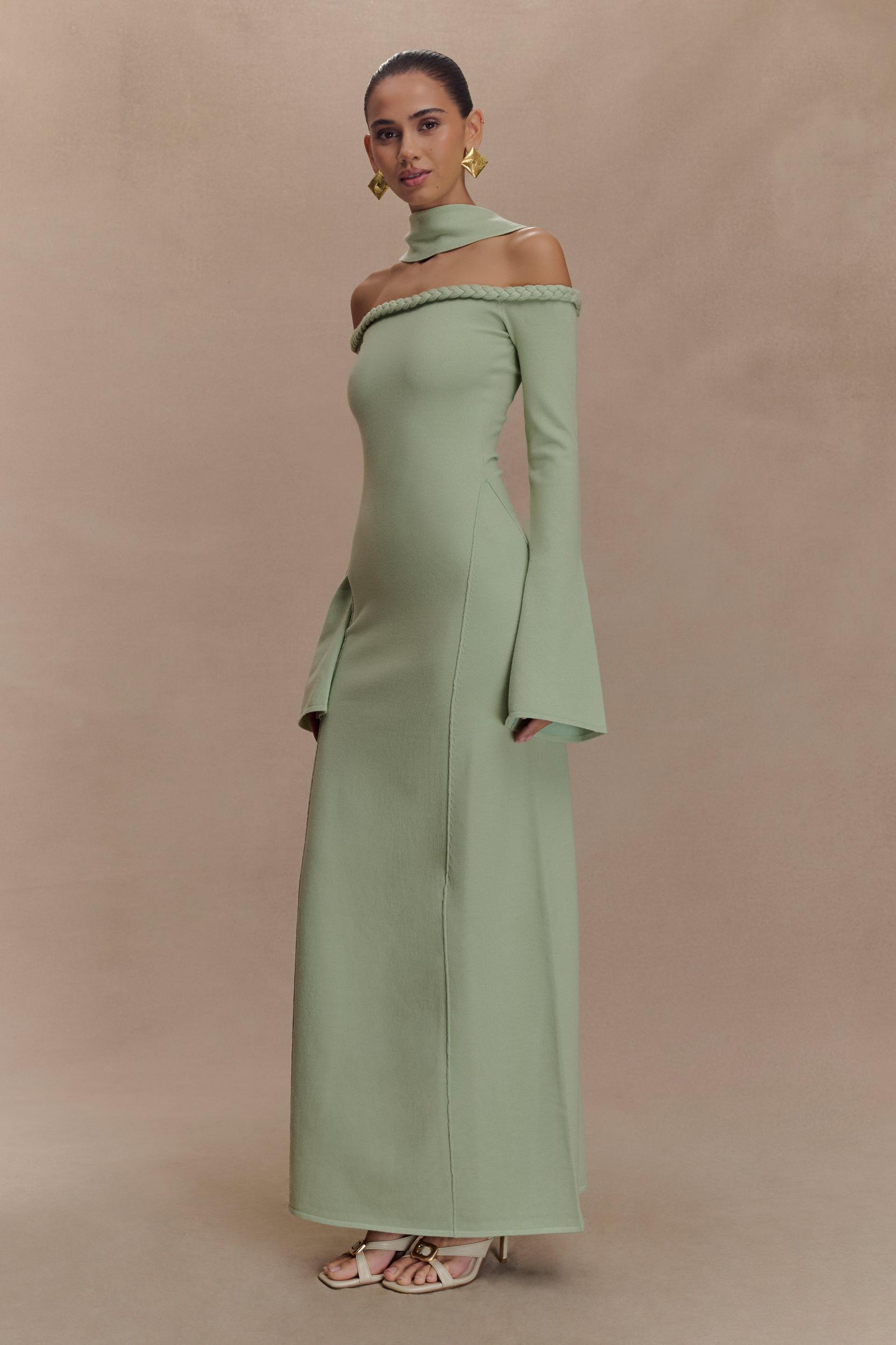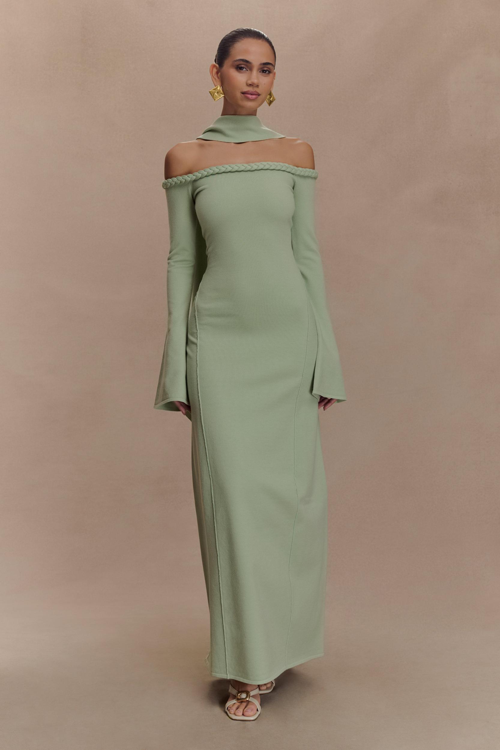 Heidi Strapless Knit Scarf Maxi Dress - Pastel Green