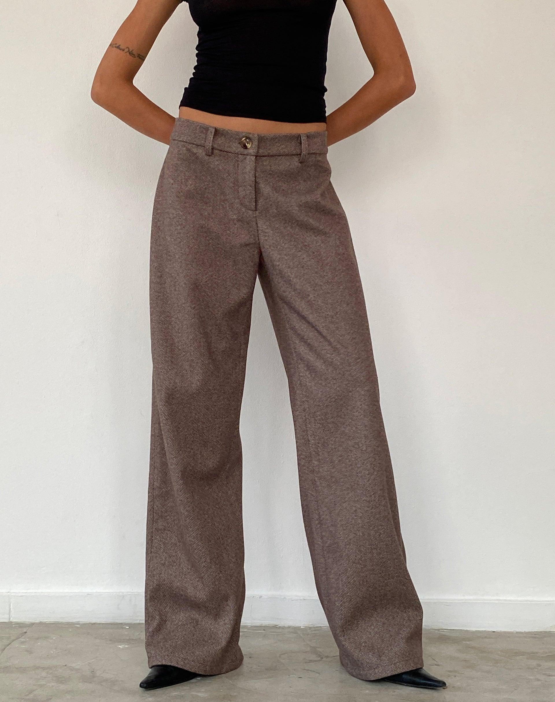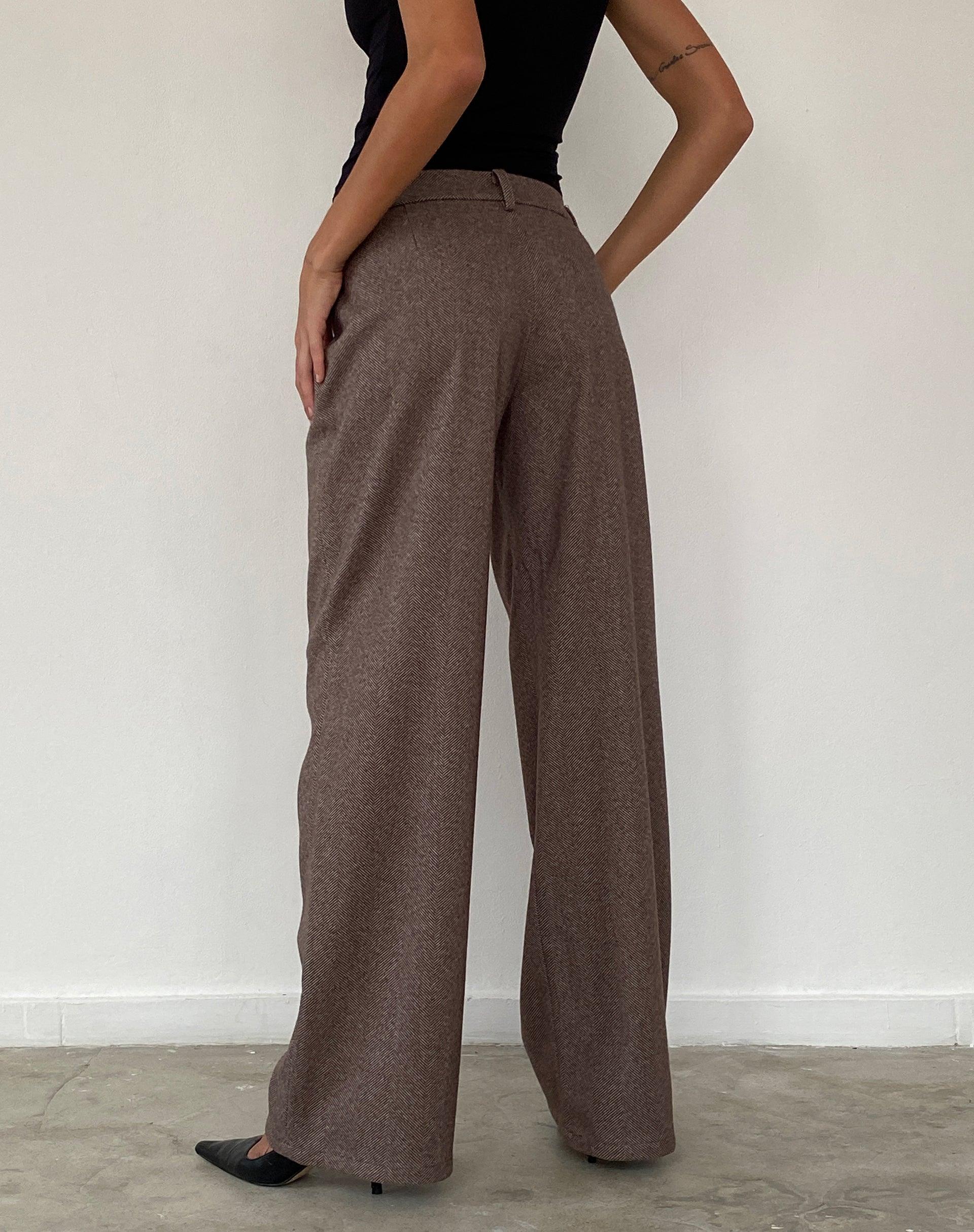 The Helsa tailored trouser boasts a low rise waist with wide legs and a zip and button fastening in a flecked brown wool fabric. Complete with pockets and belt loops. We love to wear with our Charya tee. MODEL WEARS SIZE:EXTRA SMALL - MODEL HEIGHT:5'7 - FABRIC CONTENT: 100% POLYESTER