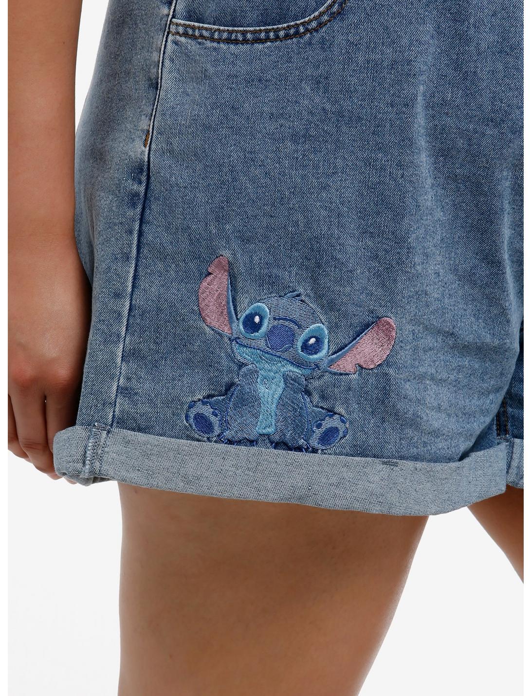 Kick back island-style with these Lilo & Stitch high-waisted denim shorts! They feature Stitch and Scrump embroidered on the front with floral detailing, plus a hibiscus flower on the back pocket. Comes with an elasticated waistband, pockets and cuffs.81% cotton; 10% polyester; 9% rayonWash cold; dry lowImportedMode is 5'10''Model wears size 16