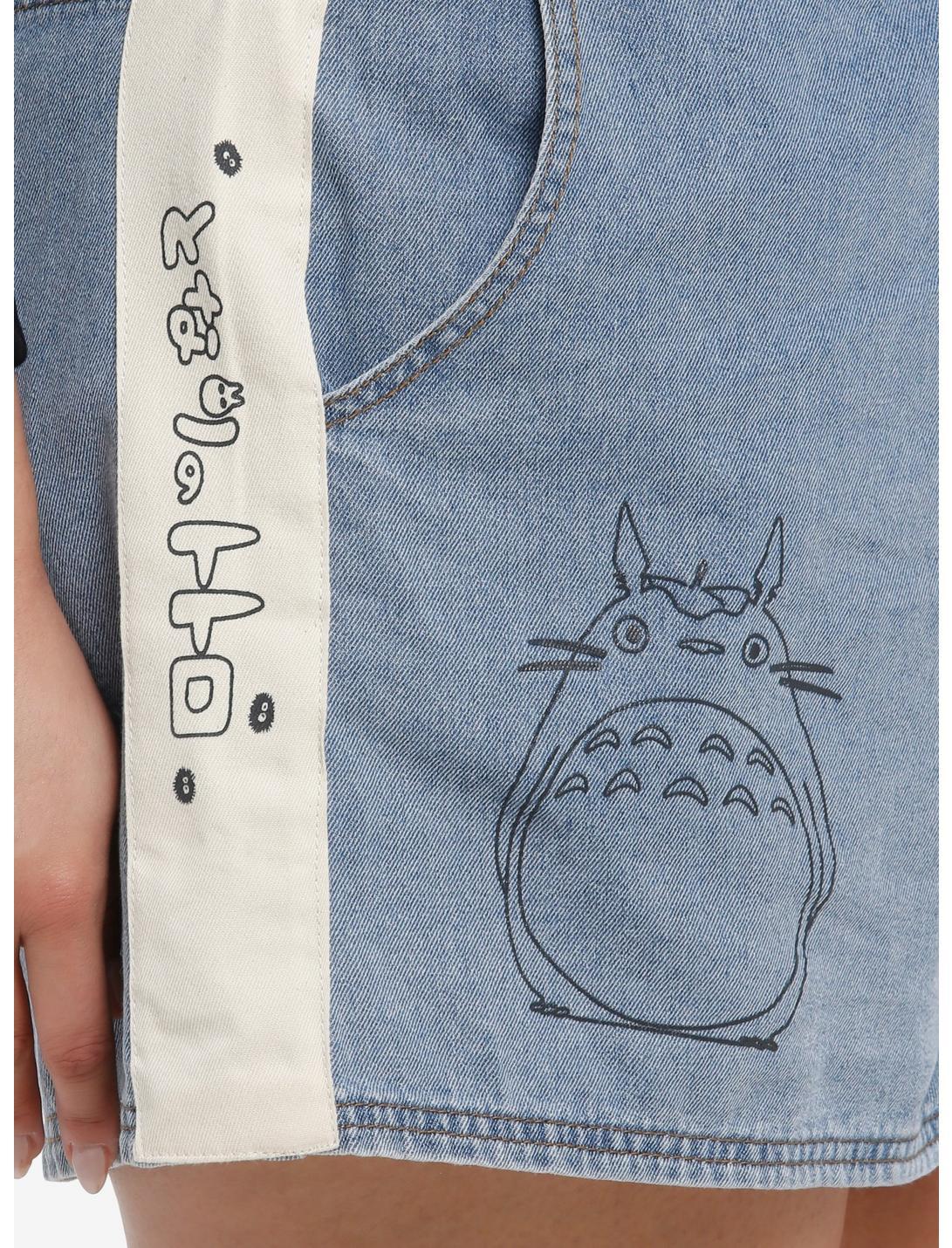 Keep your outfit comfy when you're out with the forest spirits! These denim shorts from My Neighbor Totoro feature a contrast stripe with the movie's title in Japanese, plus Totoro printed on the leg. Comes with an elasticated drawstring waistband and pockets.54% cotton; 24% rayon; 21% polyesterWash cold; dry lowImportedModel is 5'10"Model wears size 1