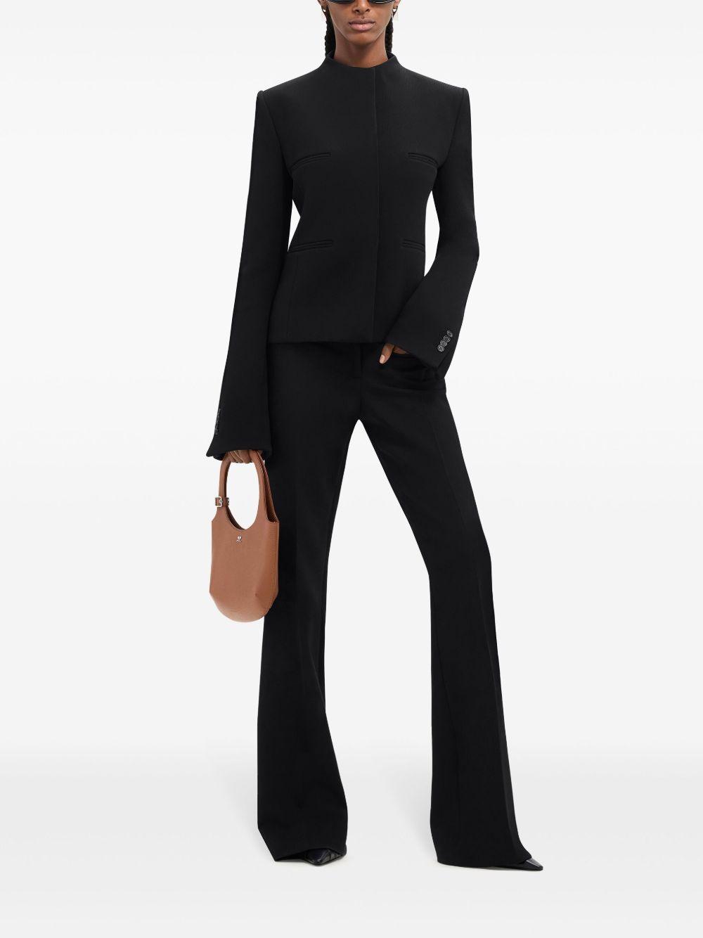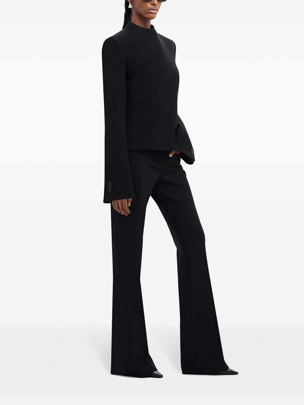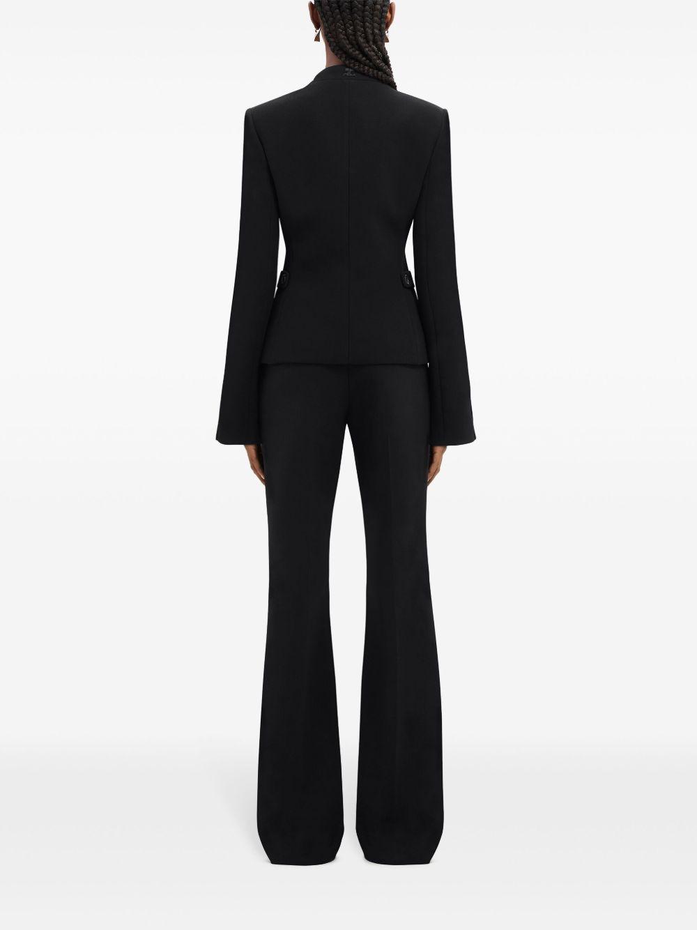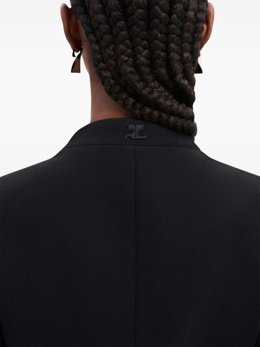 Courrèges Heritage concealed-fastening crepe jacket | Black | black | crepe texture | appliqué logo | round neck | concealed front fastening | long flared sleeves | buttoned cuffs | front welt pockets | Polyester | Fitted Jackets | Jackets | Clothing | Women