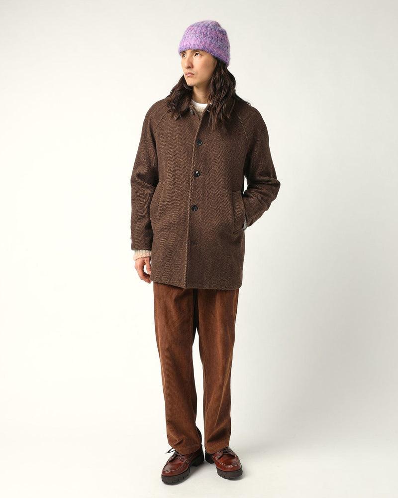 This item is final sale and is not eligible for return or exchange. Please allow extended shipping time for all sale items. 100% wool Raglan sleeve Made with care in Portugal RG0003 Styled with: Space Dye Mohair Beanie - Purple Cord Pleated Trouser - Brown Masa is 6’1” and is wearing a size M For information on our shi