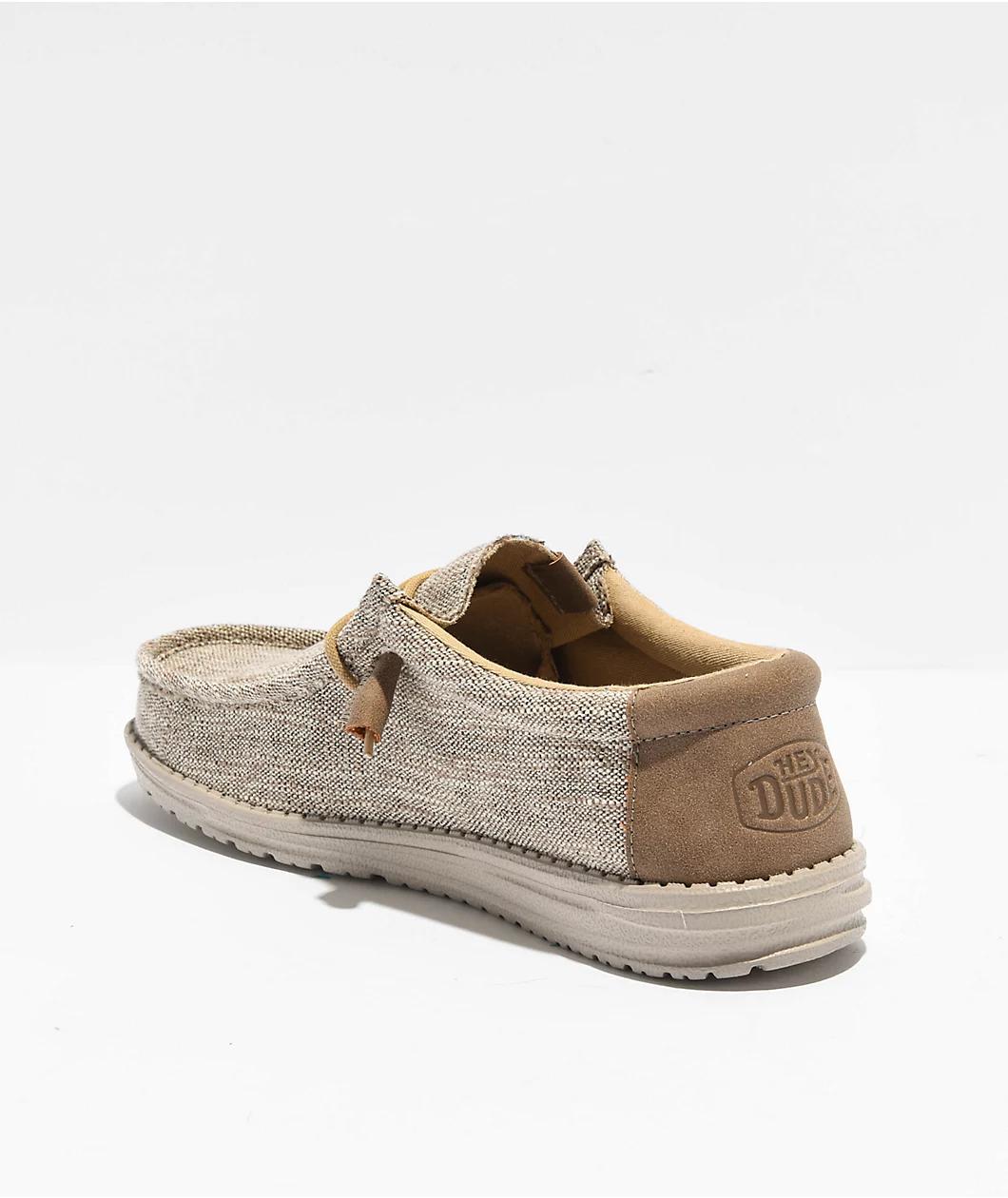 A go-to pick for any occasion, the Wally Ascend Woven shoes from HEYDUDE footwear arrive in an earthy walnut colorway. A brown textile upper is matched with an ultra-light outsole, while a leather-lined removable insole provides all-day comfort. With elas