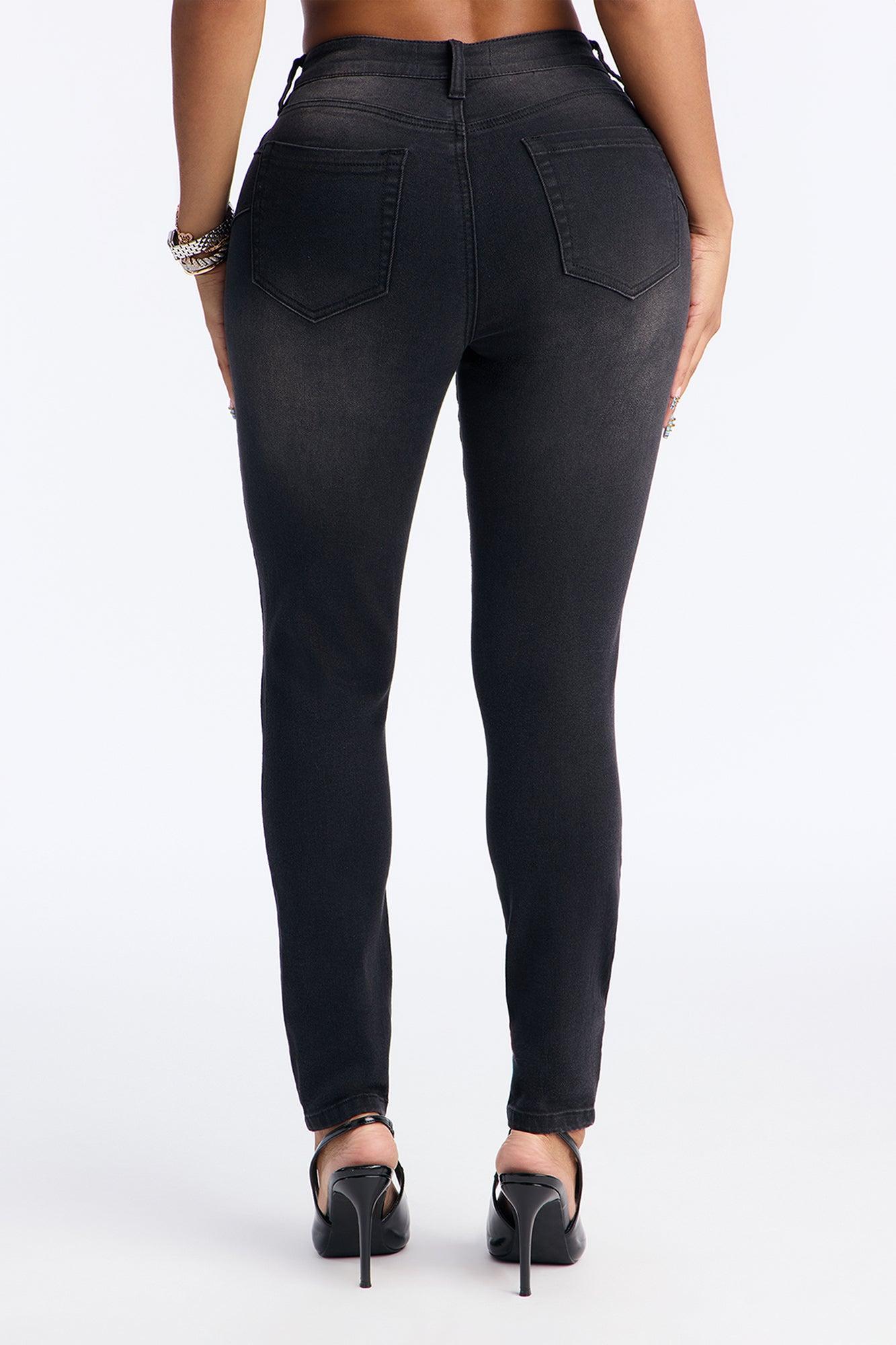 Available In Black Wash And Dark Wash. Skinny Jean 5 Pocket Ripped 10" Mid Rise 28" Inseam High Stretch Disclaimer: Due To The Specialized Wash & Distressing Process, Each Garment Is Unique. 60% Cotton 30% Polyester 8% Rayon 2% Spandex Imported California Proposition 65WARNING: Cancer and Reproductive Harm - www.P65Warnings.ca.gov.