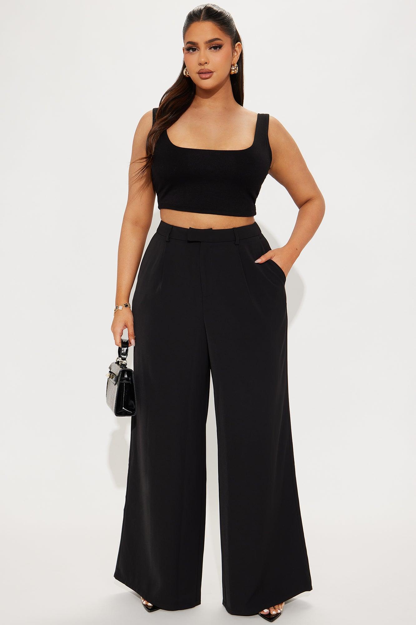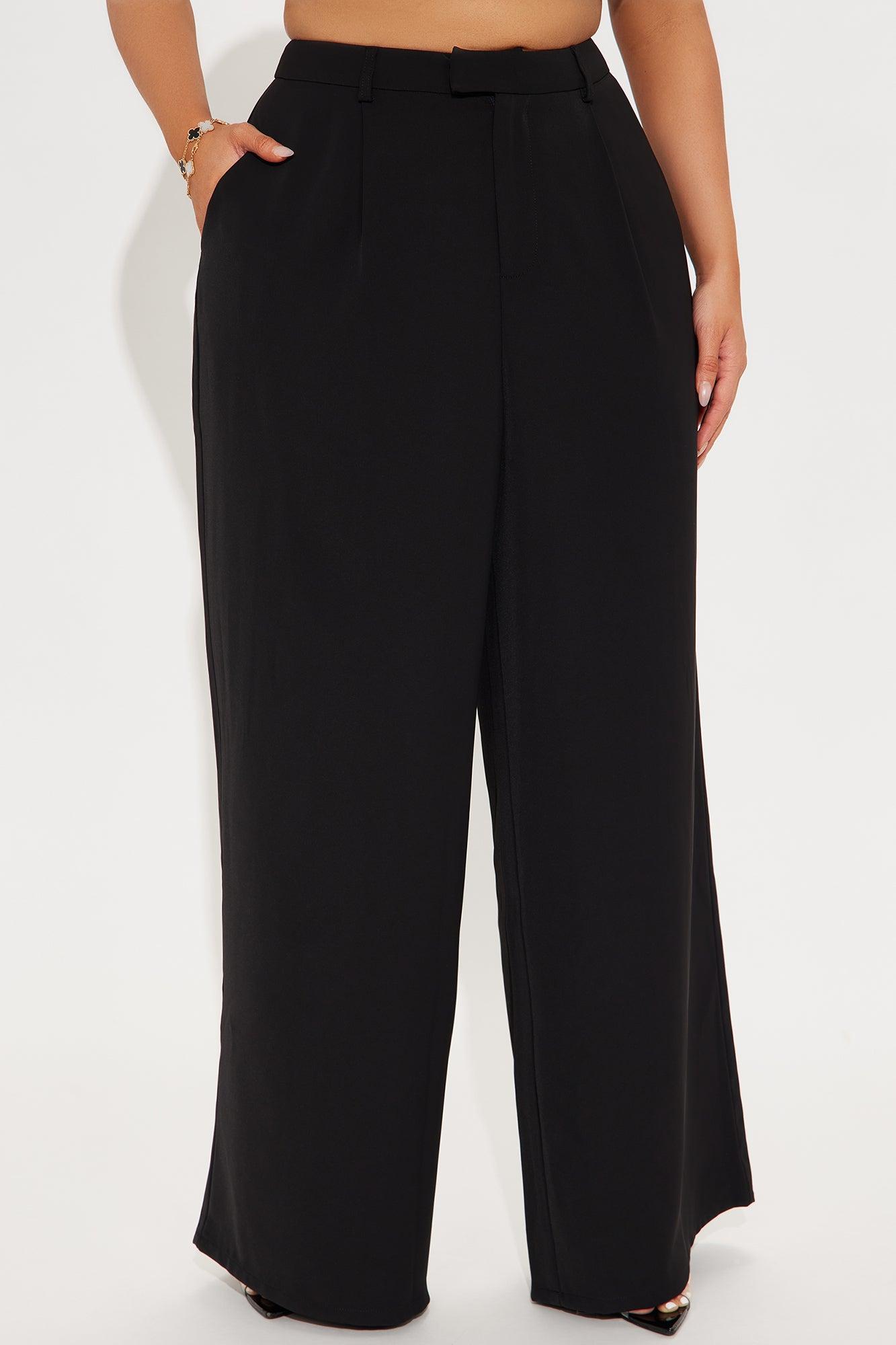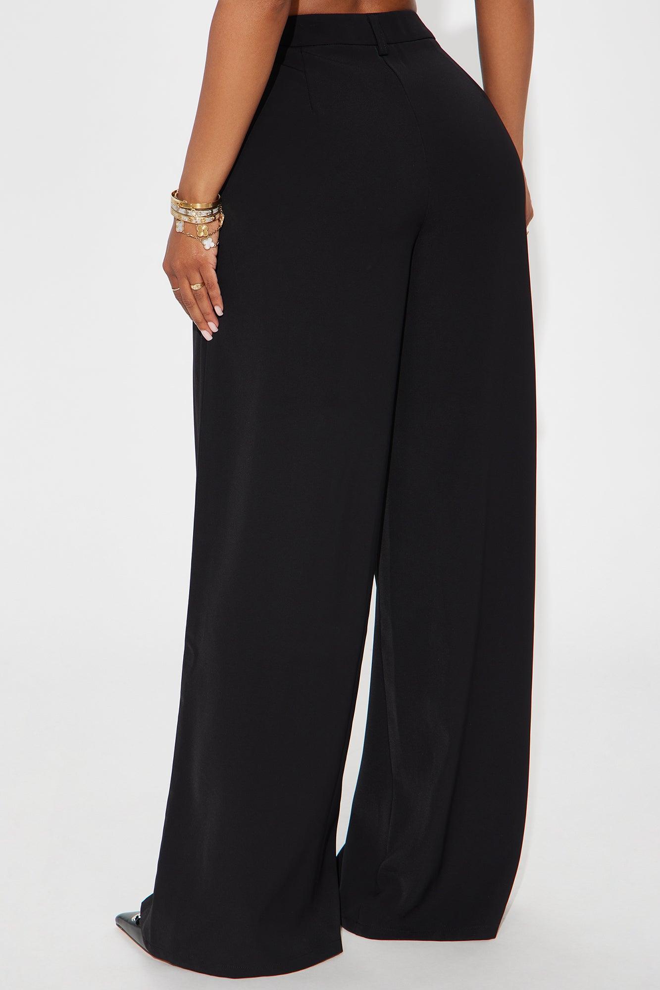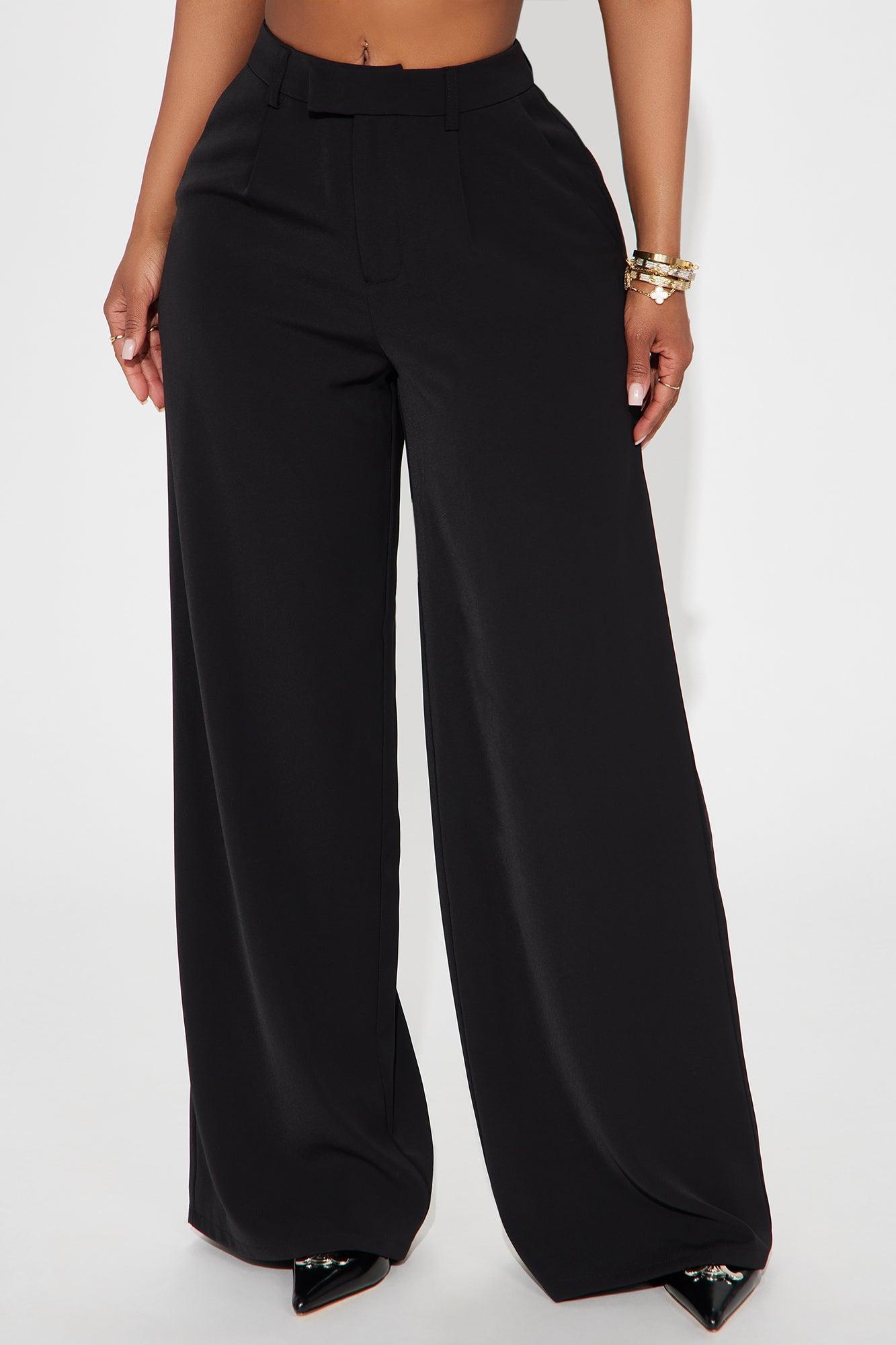 Available In Charcoal, Black, And Blue. Trouser Pant Mid Rise Hook & Eye Closure Zip Fly Hand Pockets Wide Leg Non Stretch 32" Inseam Pair With "High Returns Oversized Blazer" Shell : 100% Polyester Lining : 95% Polyester , 5% Spandex Imported