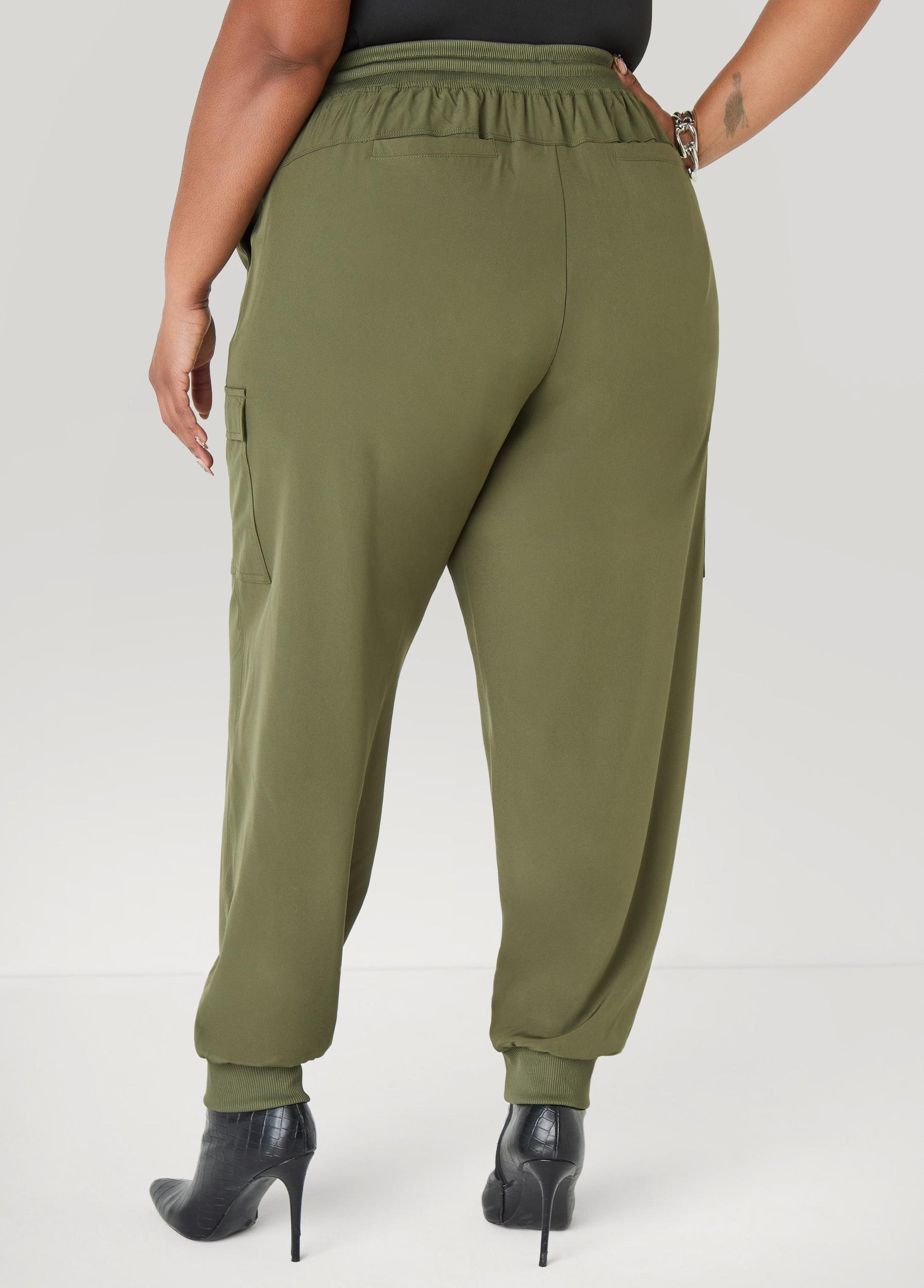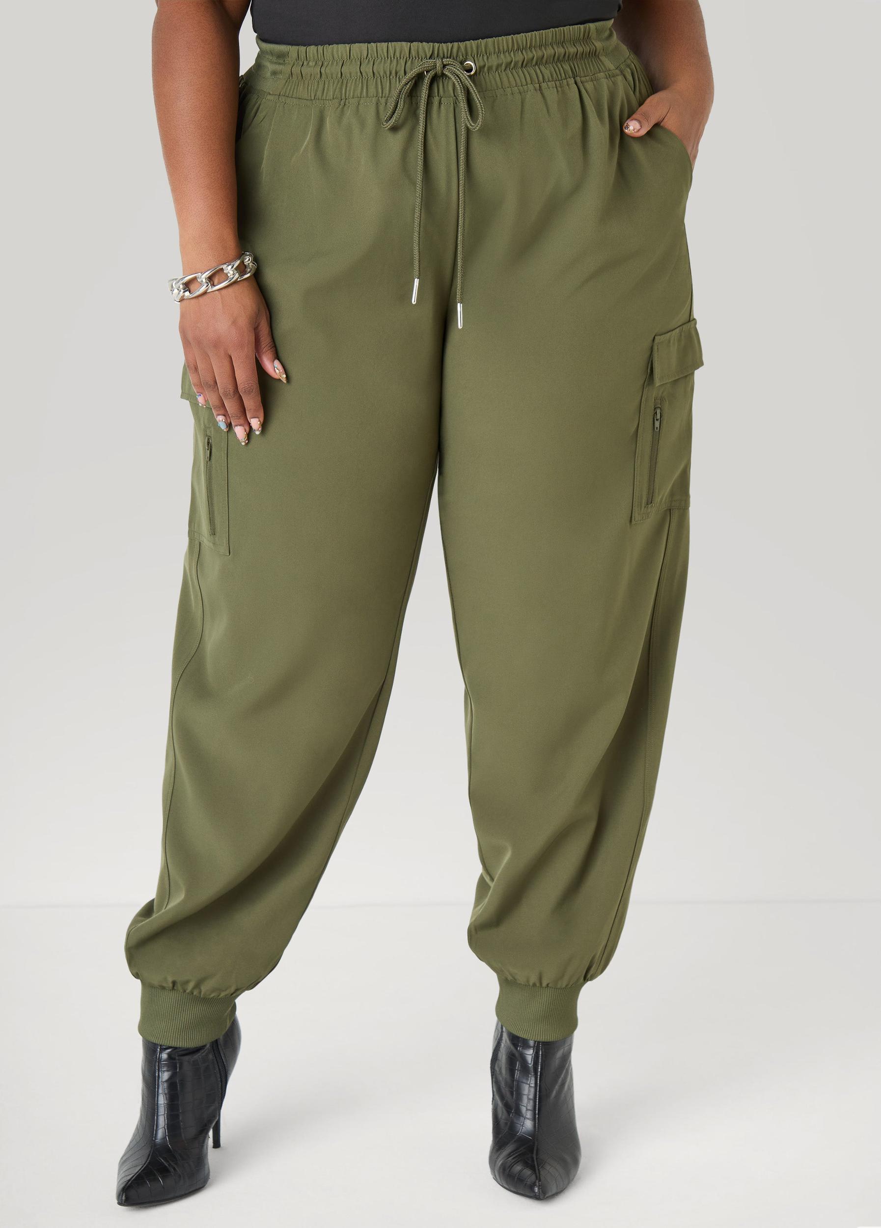 Our high-waist cargo joggers feature zip accents, elasticized drawstring waist and cuffed ankles for a relaxed, contemporary fit. Together with the matching jacket, they form a modern, head-to-toe two-piece ensemble.