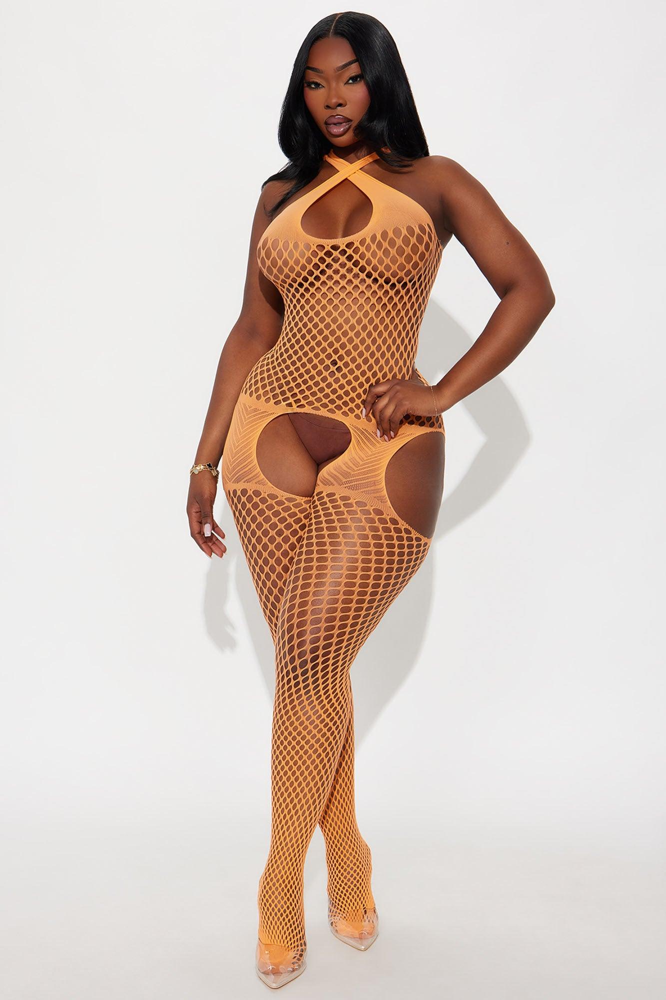 High Strung Fishnet Crotchless Jumpsuit Bodystocking - Orange Female