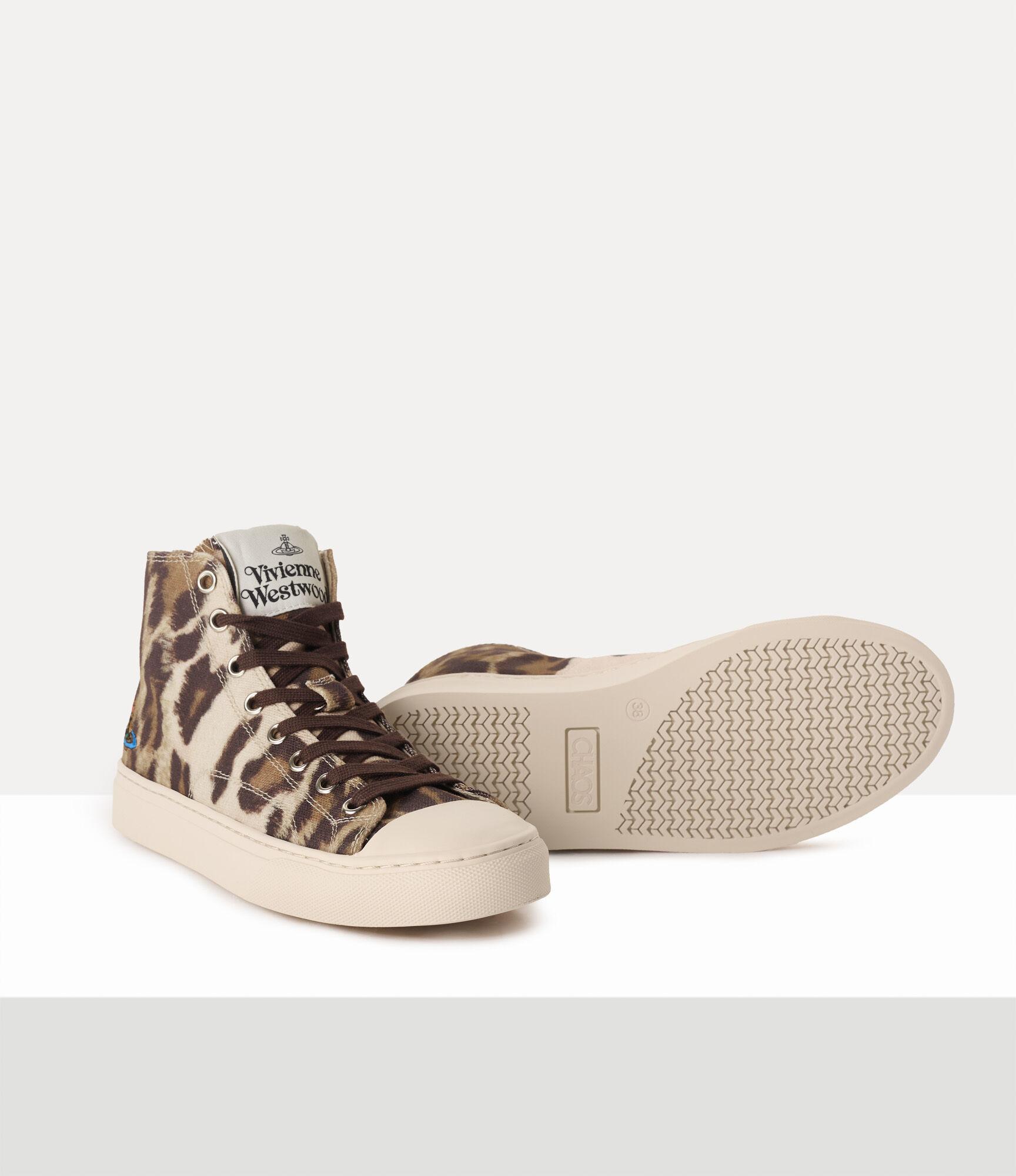 Our archival High-top plimsoll is reimagined in an all-over leopard print finish, echoing Vivienne's Autumn-Winter 2001 collection, 'Wild Beauty'. Featuring our embroidered orb at the ankle - symbolising the ethos of propelling the past into the future - the design offers a classic canvas silhouette.