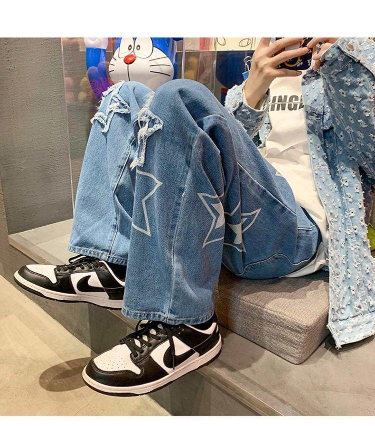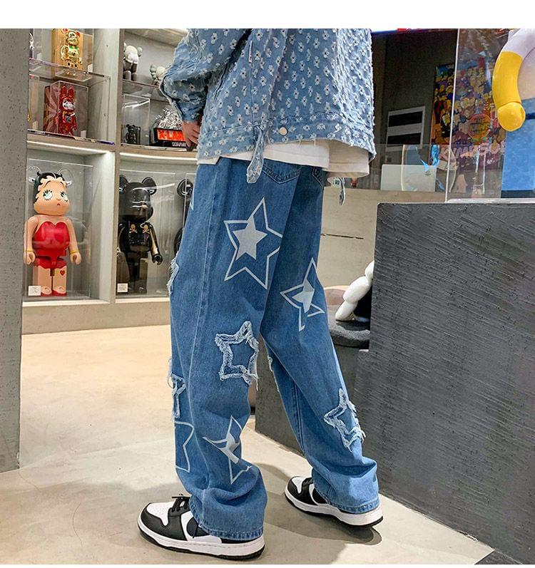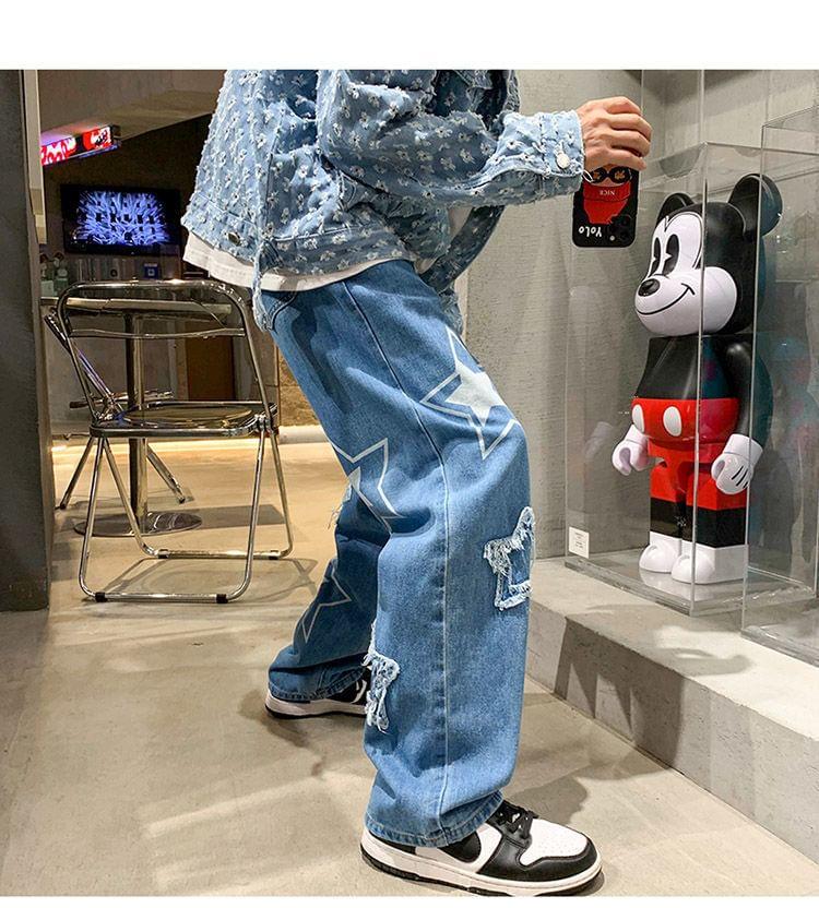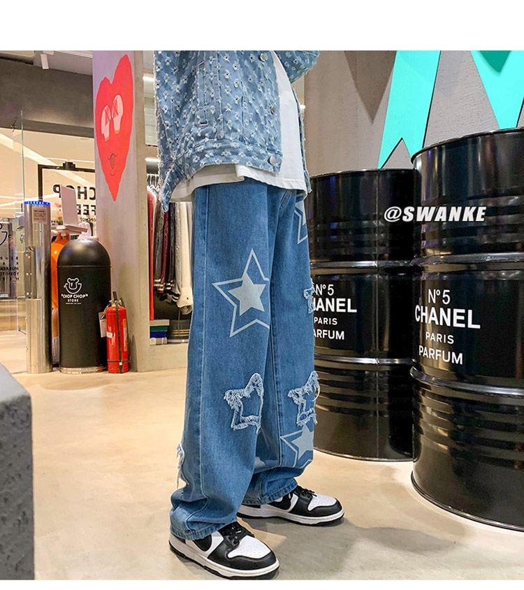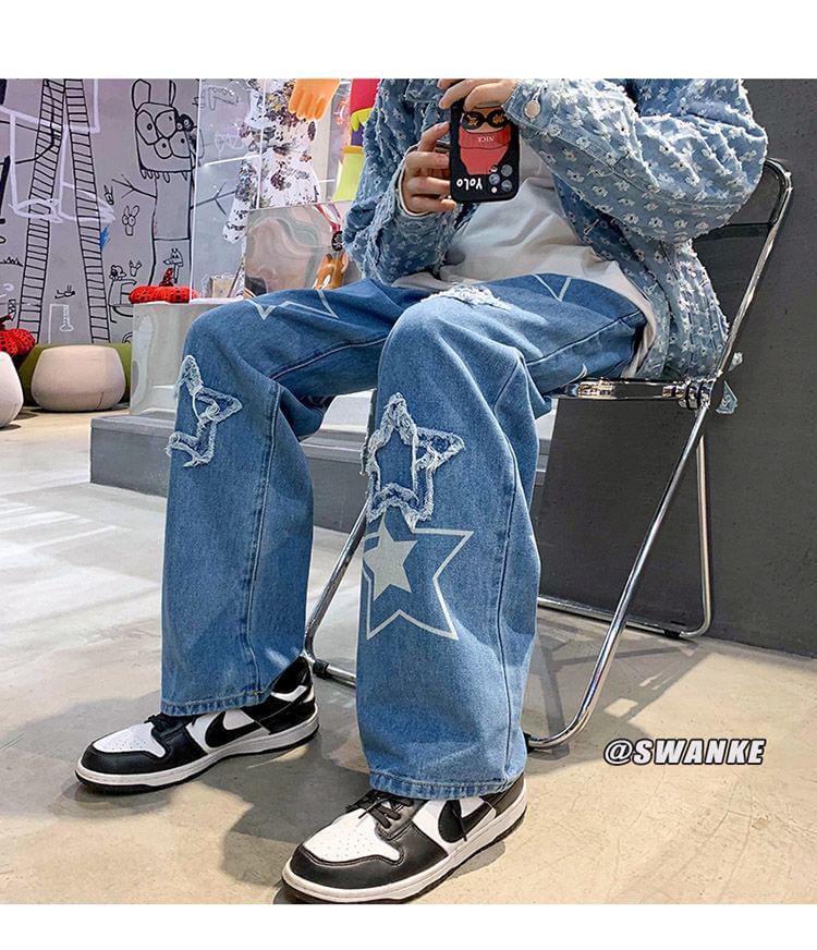 Buy Myanderthal High Waist Star Applique Wide Leg Jeans at YesStyle.com! Quality products at remarkable prices. FREE Worldwide Shipping available!