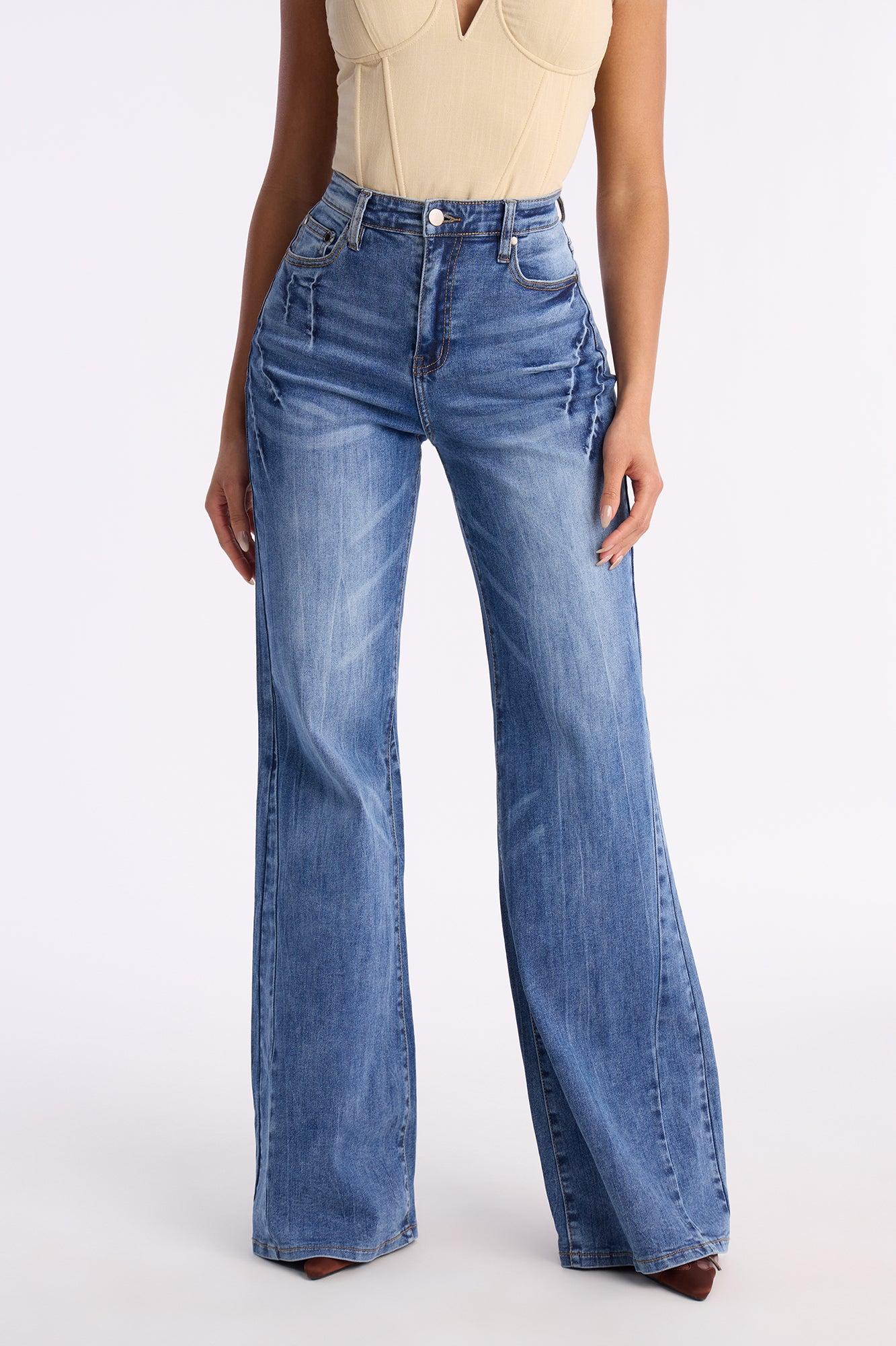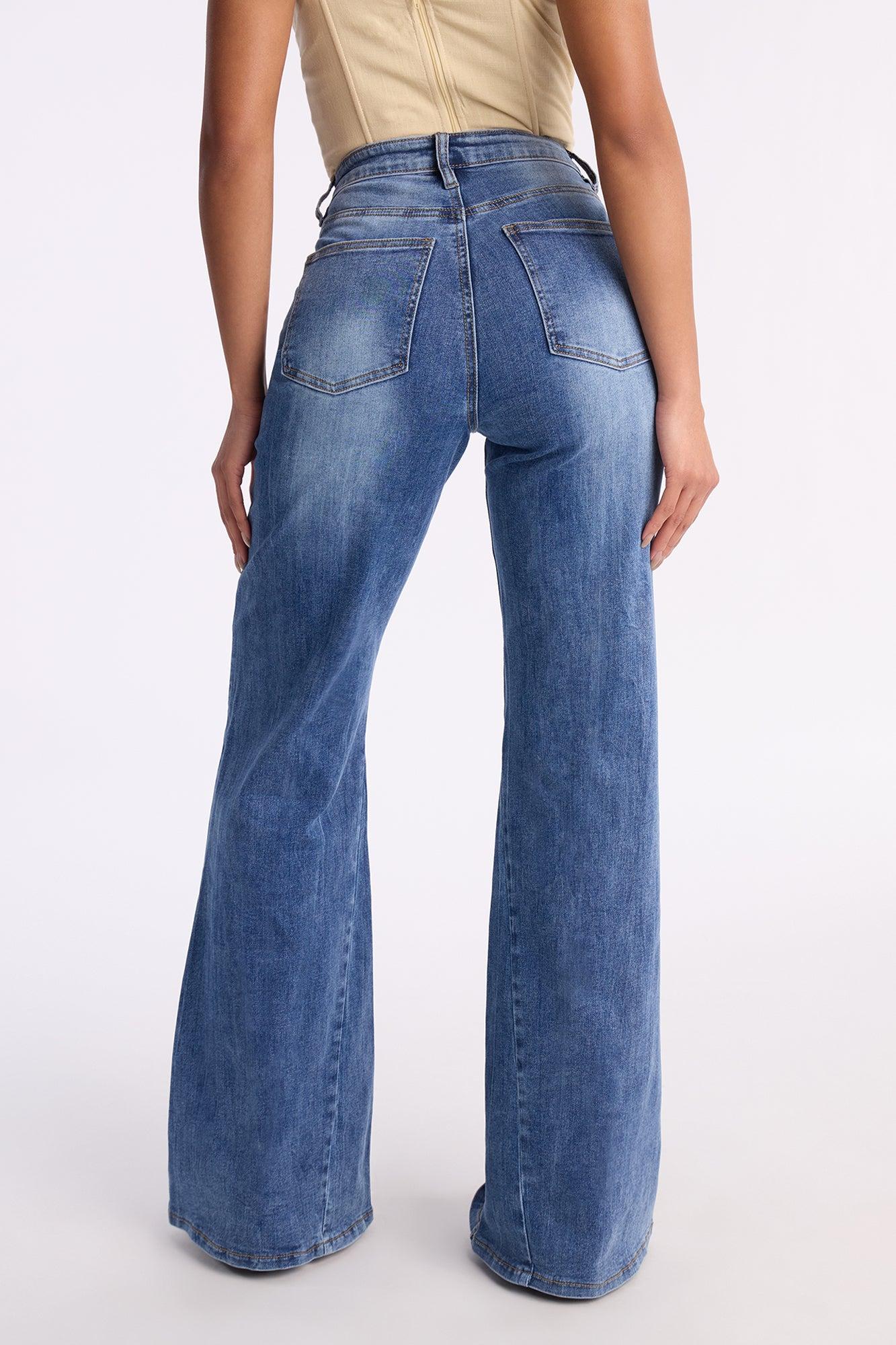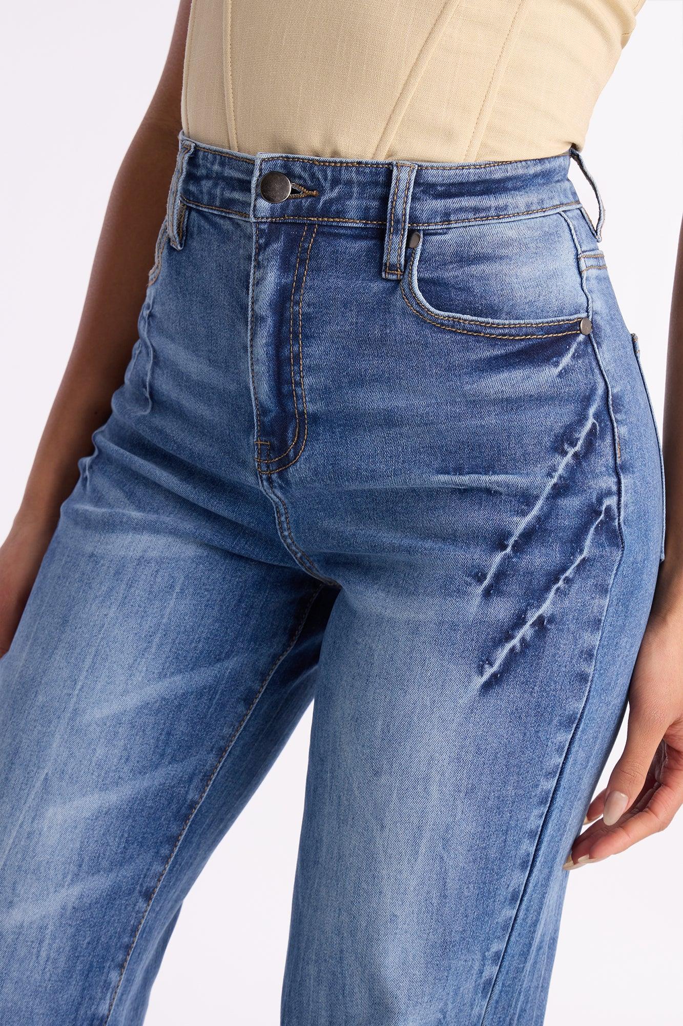 Available In Medium Wash. Wide Leg 5 Pocket Seaming Details 11" Rise 34" Inseam Medium Stretch Disclaimer: Due To The Specialized Wash Process, Each Garment Is Unique. Self : 96.5% Cotton 2.5% Polyester 1% Spandex Imported California Proposition 65WARNING: Cancer and Reproductive Harm - www.P65Warnings.ca.gov.
