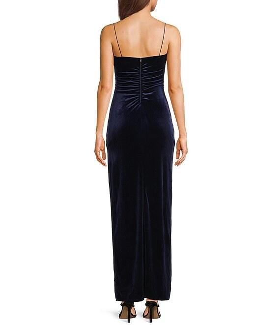 Honey and Rosie Feather Trim Square Neck Long Dress