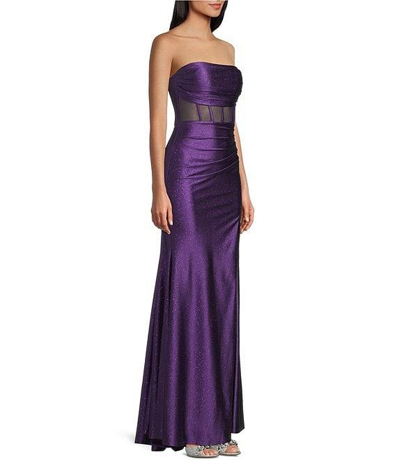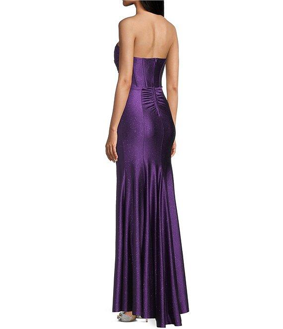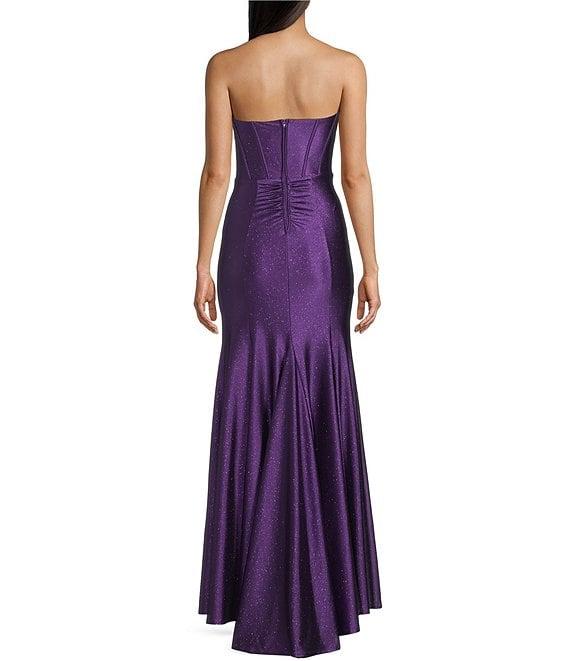 Honey and Rosie Glitter Knit Strapless Illusion Corseted Side Slit Dress