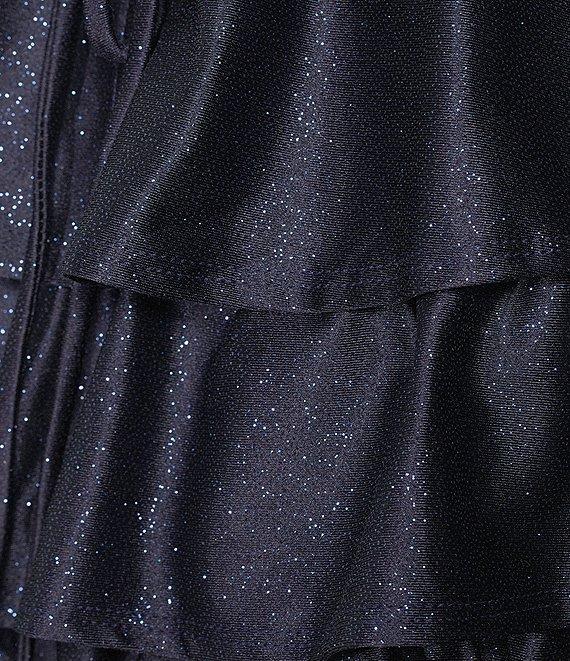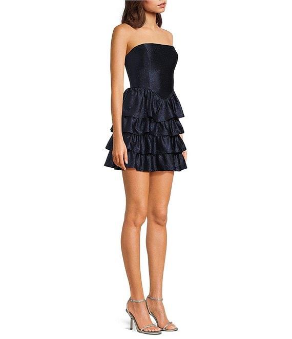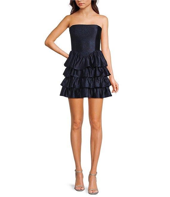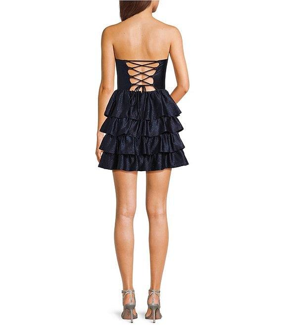 Honey and Rosie Glitter Knit Strapless Tiered Lace Up Tie Back Fit And Flare Dress