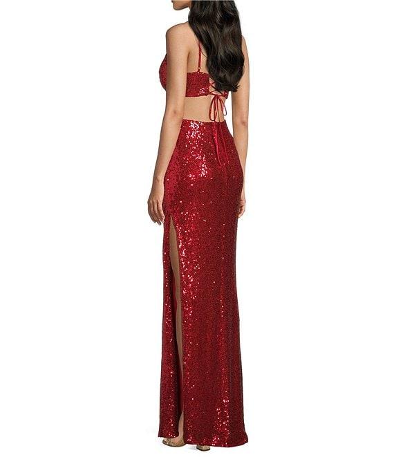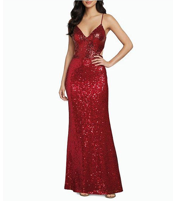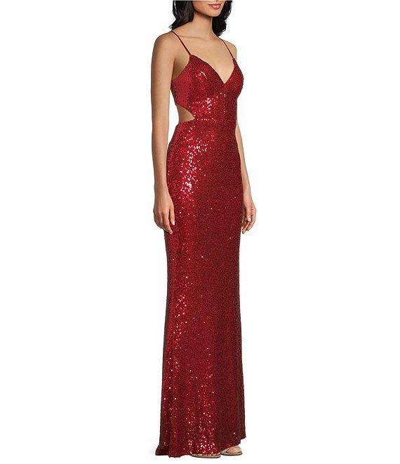 Honey and Rosie Sequin Lace-Up Back Cut-Out Long Dress