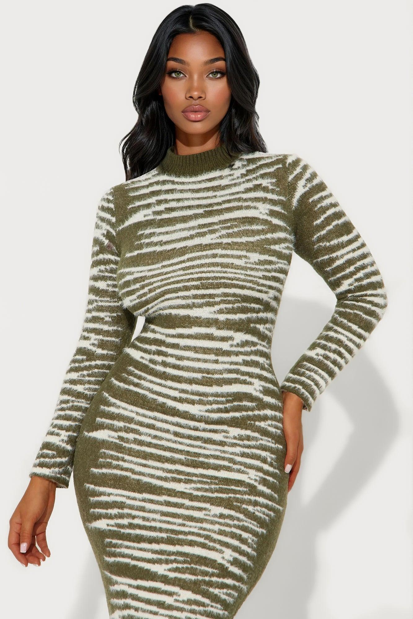 Hot Flow Sweater Maxi Dress - Olive/combo Female