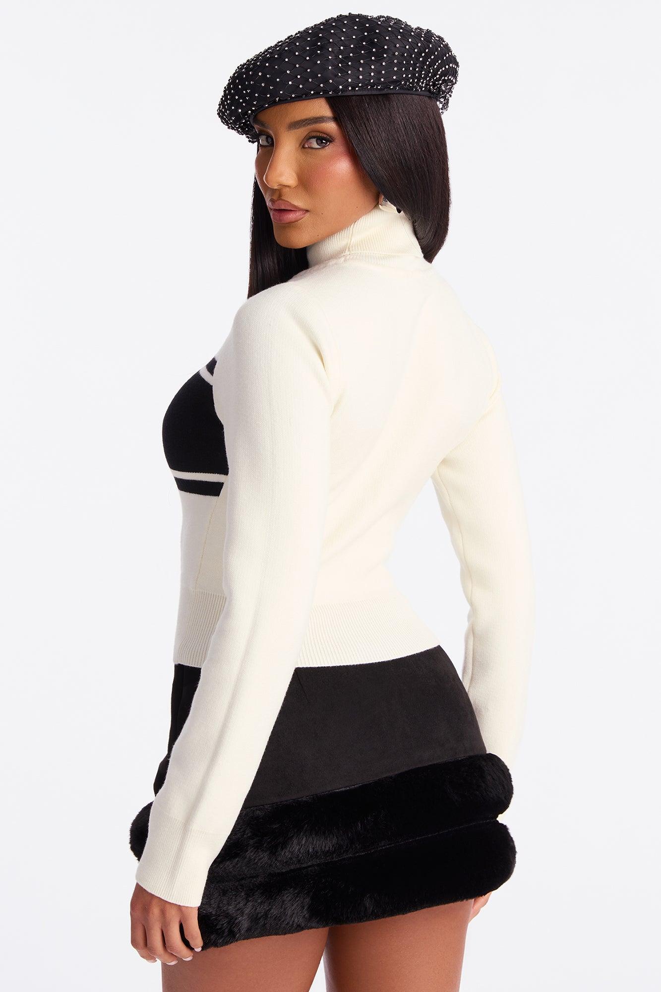 Hot Gossip Turtle Neck Striped Sweater - White/Black Female