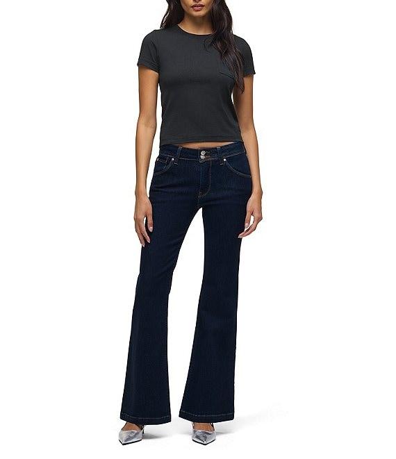 From Hudson Jeans, these jeans feature: Stretch denim fabrication Flared leg High-rise Full length Traditional 5 pocket Button/zip closure Approx. 32" inseam, 22" leg opening, 10.25" rise length Cotton/elastomultiester/elastane Machine wash/tumble dry Imported.
