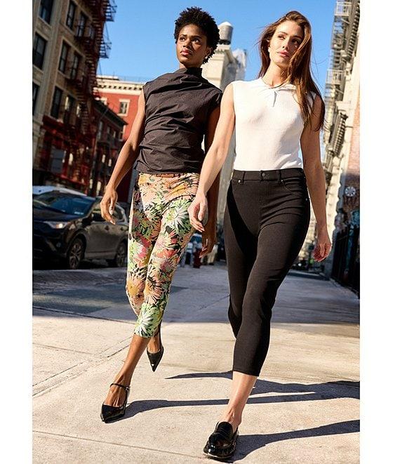 From HUE, the Hi-Rise Ultra Soft Denim Capri Leggings features: High-rise silhouette Faux front pockets Functional back pockets Belt loops Approx. 21" inseam Cotton/polyester, spandex Machine wash cold with like colors, tumble dry low, cool iron if needed Imported.