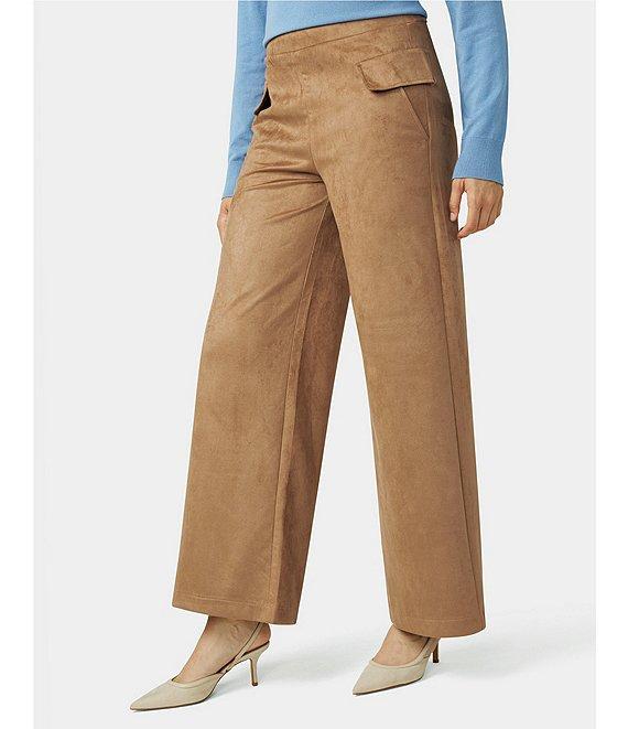 Womens Suede Lace-Up Straight-Leg Pants