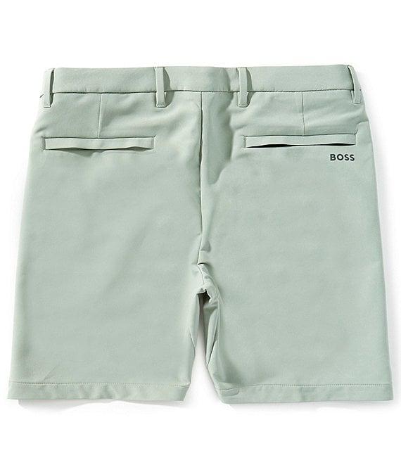 From Hugo Boss, these shorts feature: Slim fit Regular rise Flat front Zip fly with button closure 2 French front pockets 2 back welt pockets 7" inseam Quick dry Water repellent 4-way stretch fabric Polyester/elastane Machine wash/tumble dry Imported.