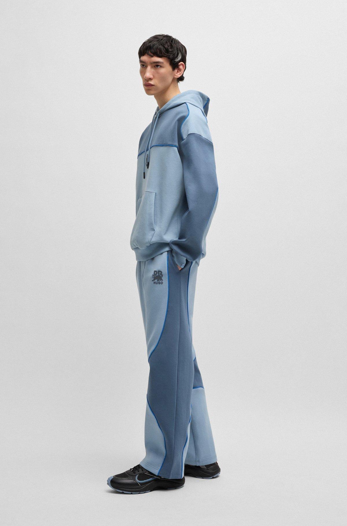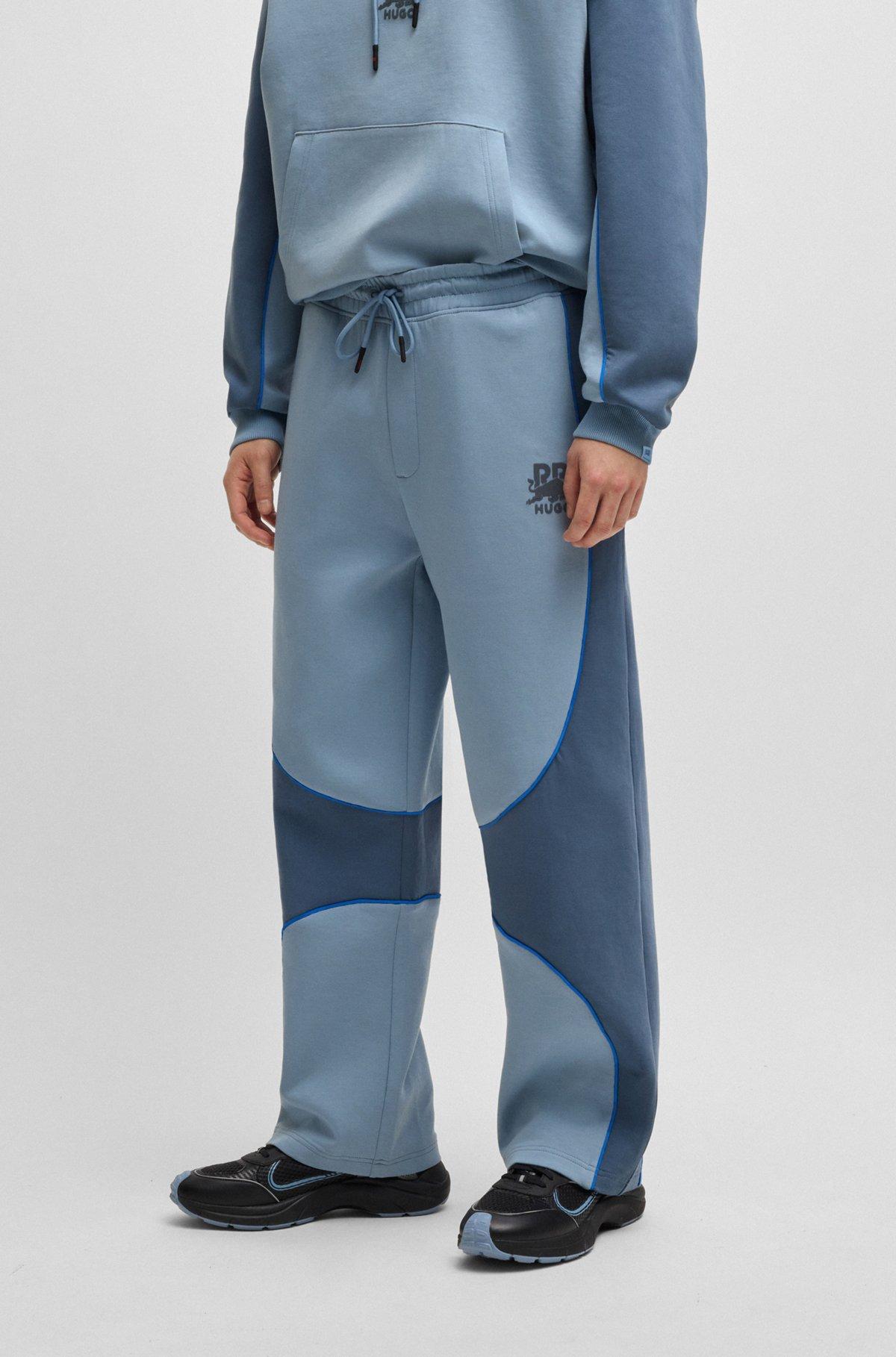With decorative reflective piping and bull graphics, these men's cotton-rich HUGO x RB tracksuit bottoms have an easy oversize fit. Comfortable stretch blend. Celebrate the thrill of motorsports with this unique product from the high-octane collaboration between HUGO and the Visa Cash App Racing Bulls Formula One™ Team.