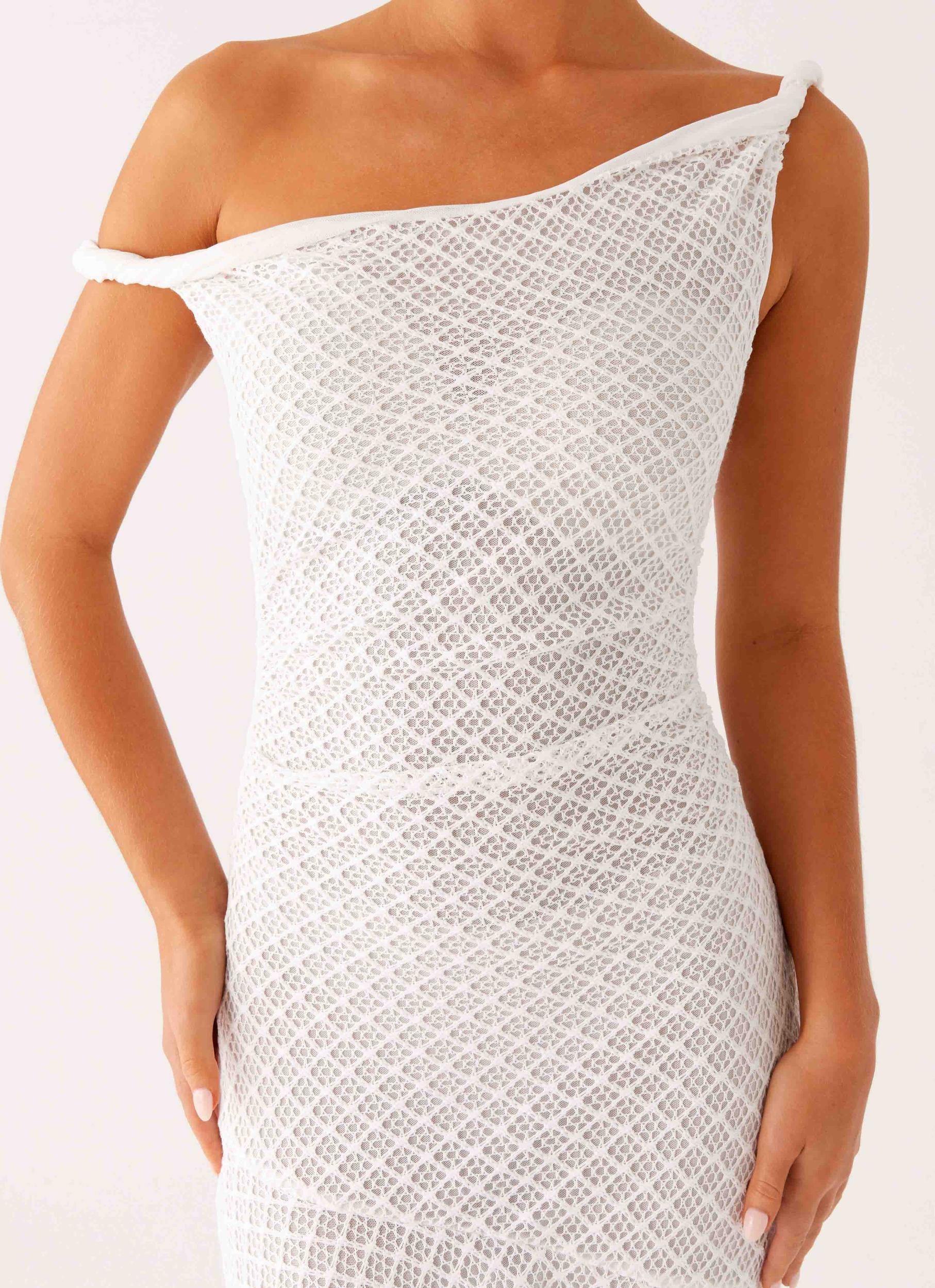 Peppermayo Exclusive The Huntah Midi Dress in Ivory features an asymmetrical neckline with twisted straps and side ruching for a flattering silhouette. Made from stretch mesh with a fully lined design, its asymmetrical hemline adds a modern, elegant touch to this midi-length dress. - Midi length- Asymmetrical neckline- Twisted straps- Stretch mesh- Side ruching- Asymmetrical hemline- Fully lined- Fabric: 95% Polyester, 5% Spandex Size AU 8 / US 4 garment measurements: Bust: 76 cm / 29.92 inWaist: 64 cm / 25.20 inHip: 82 cm / 32.28 inHem: 230 cm / 90.55 inLength: 85 cm / 33.46 in Yasmin is 174cm and wearing a size AU 6 / and US 2