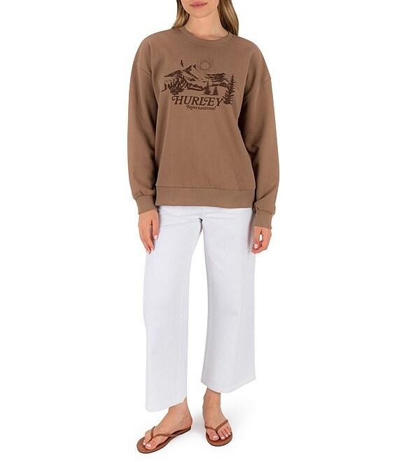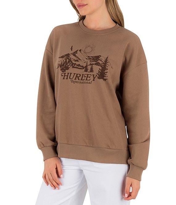 From Hurley, this sweatshirt features: Ribbed neck, cuffs and hem Long sleeves Scenic graphic with “Hurley” logo and other wording screenprinted on the front Pullover styling Oversized fit Cotton/polyester fleece Machine wash/tumble dry Imported.