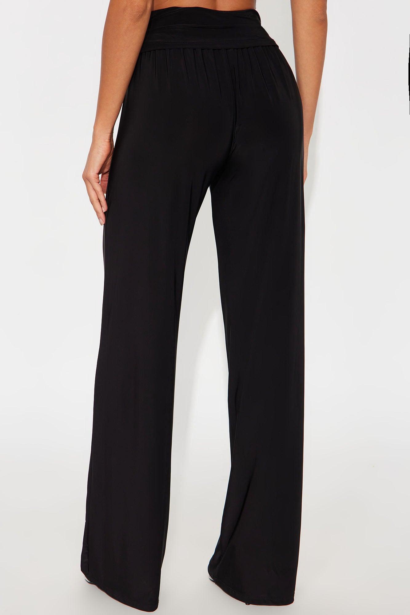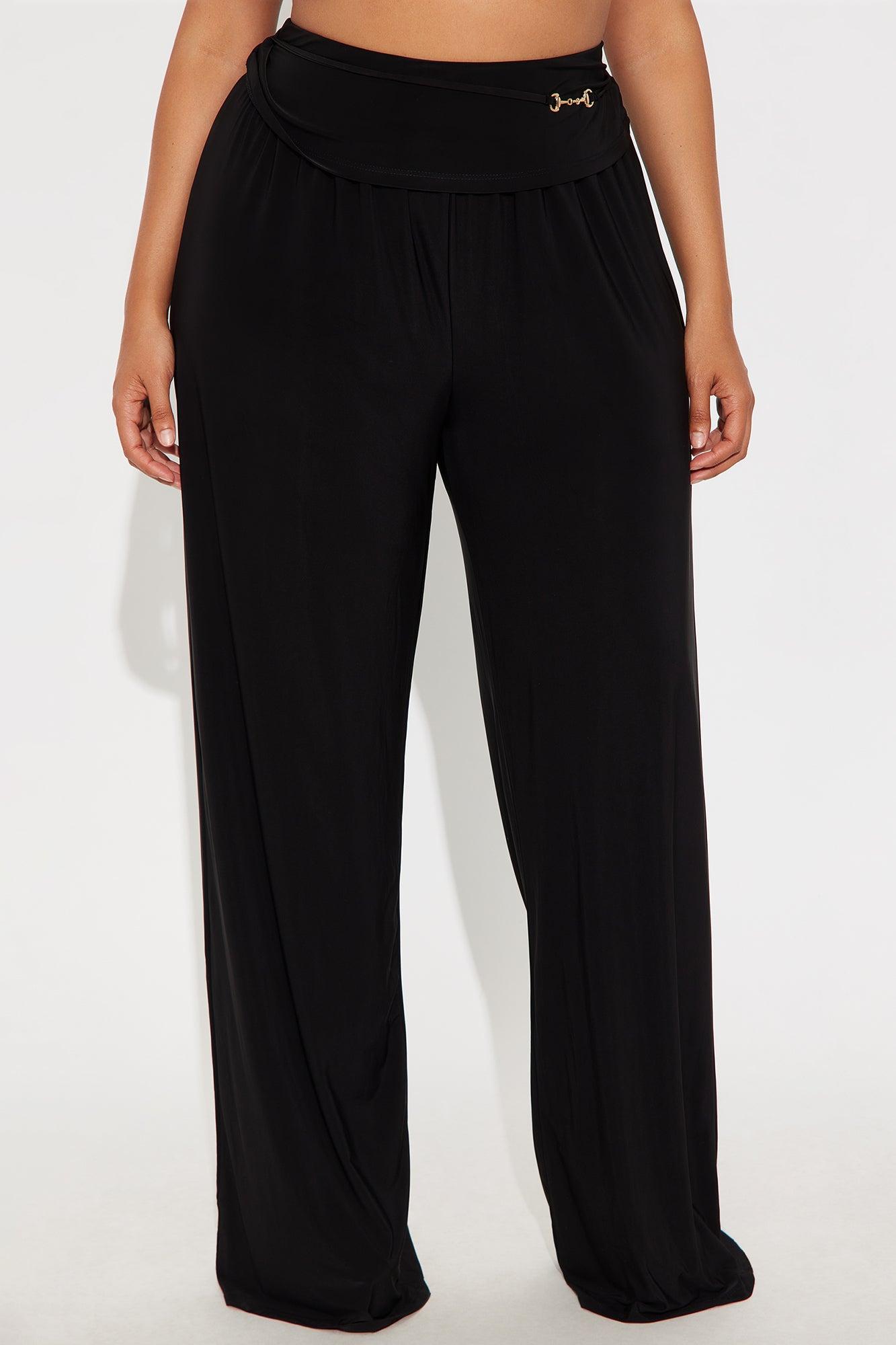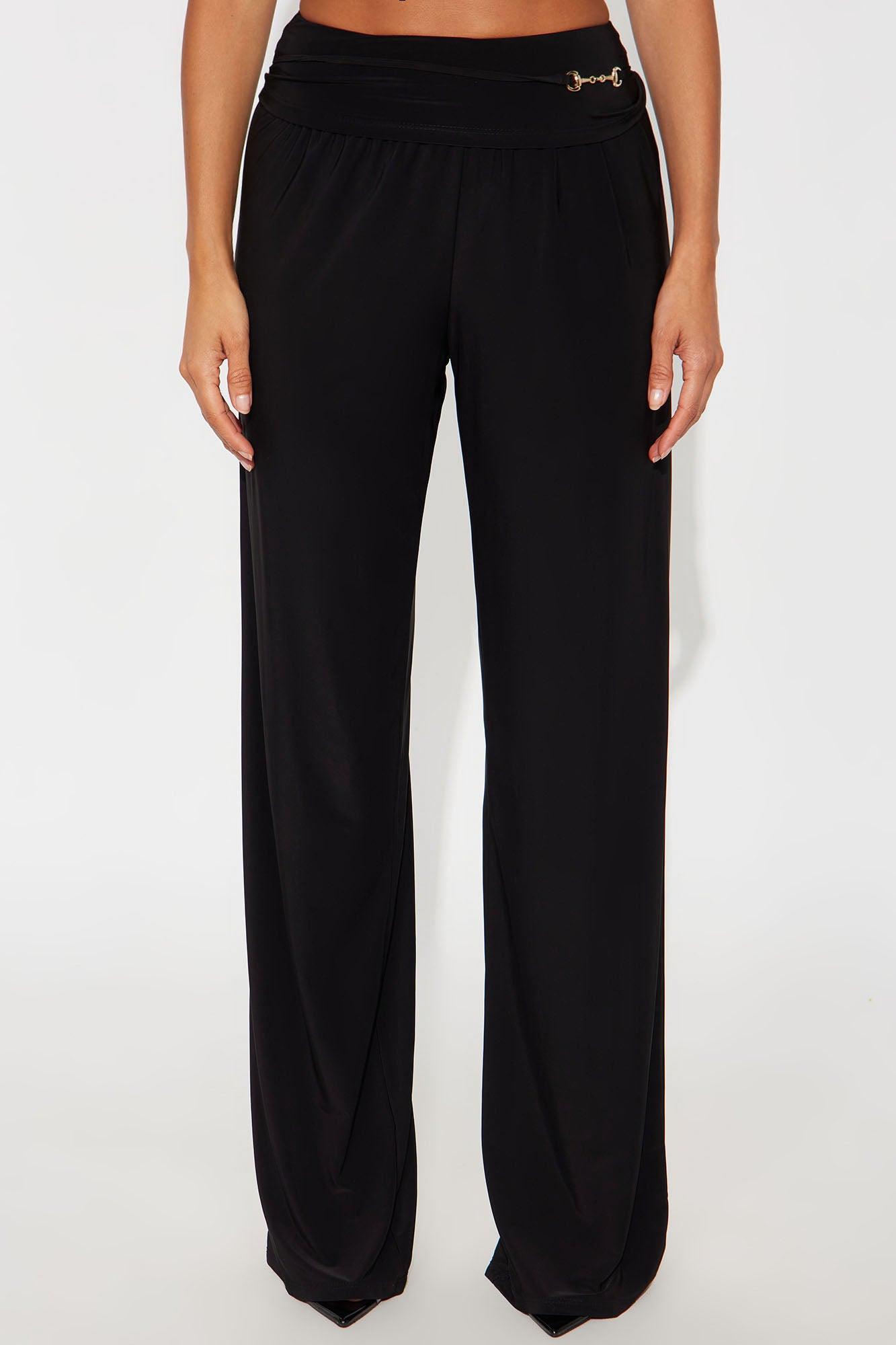 Available In Black And Mocha. Wide Leg Pant Stretch Regular 33" Inseam Mid Rise Foldover Detail Hardware Detail Self: 95% Polyester 5% Spandex Imported California Proposition 65WARNING: Cancer and Reproductive Harm - www.P65Warnings.ca.gov.