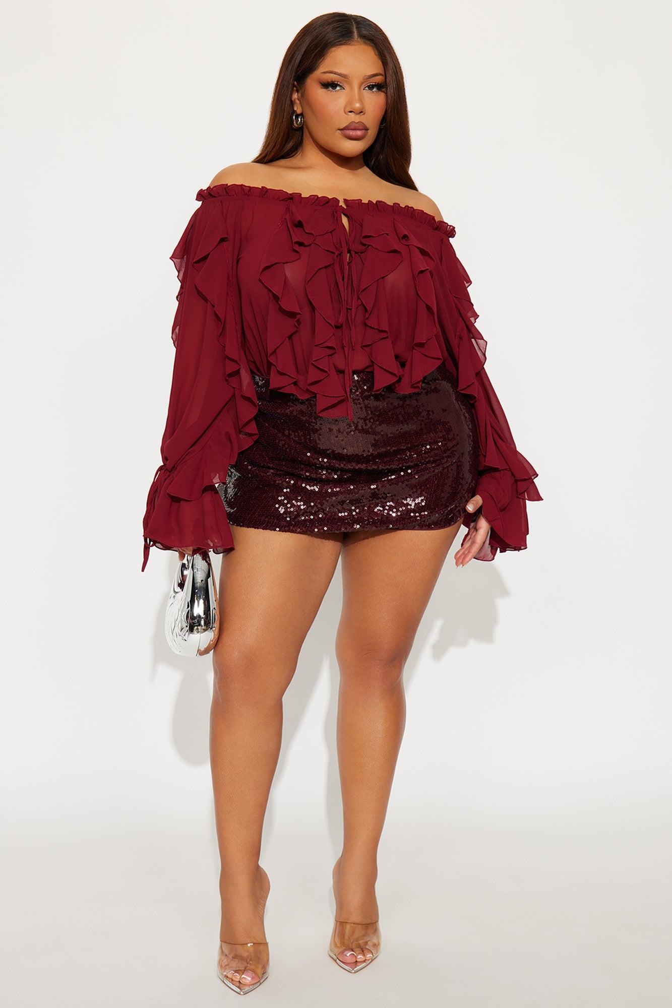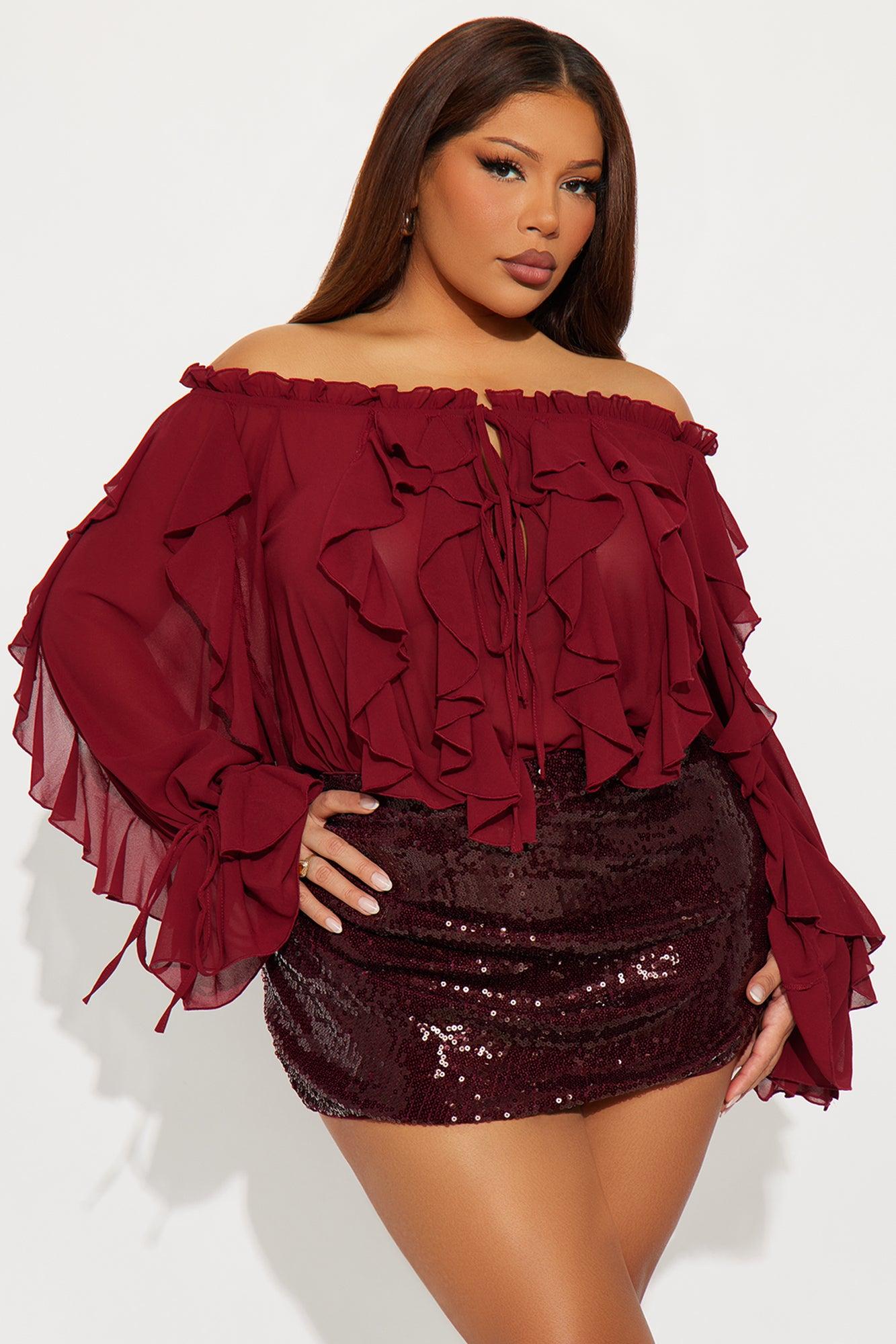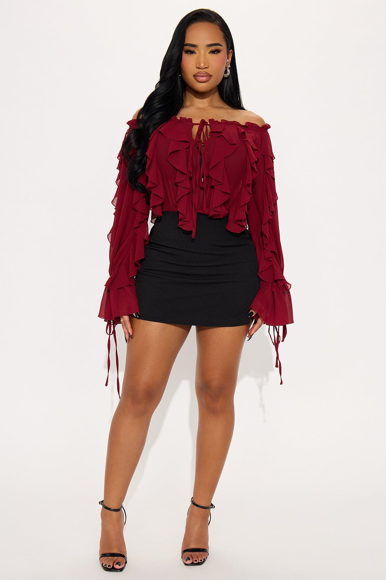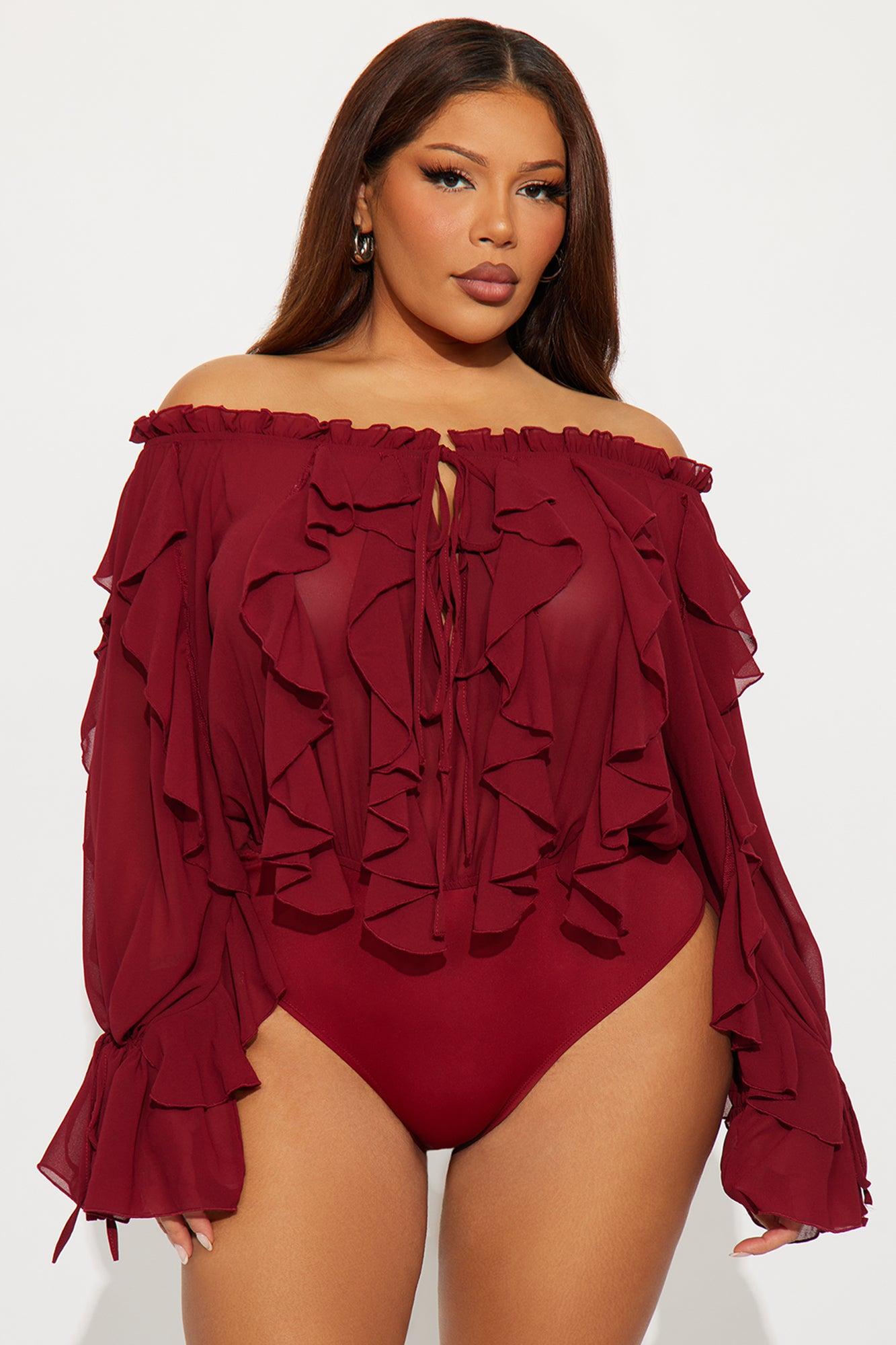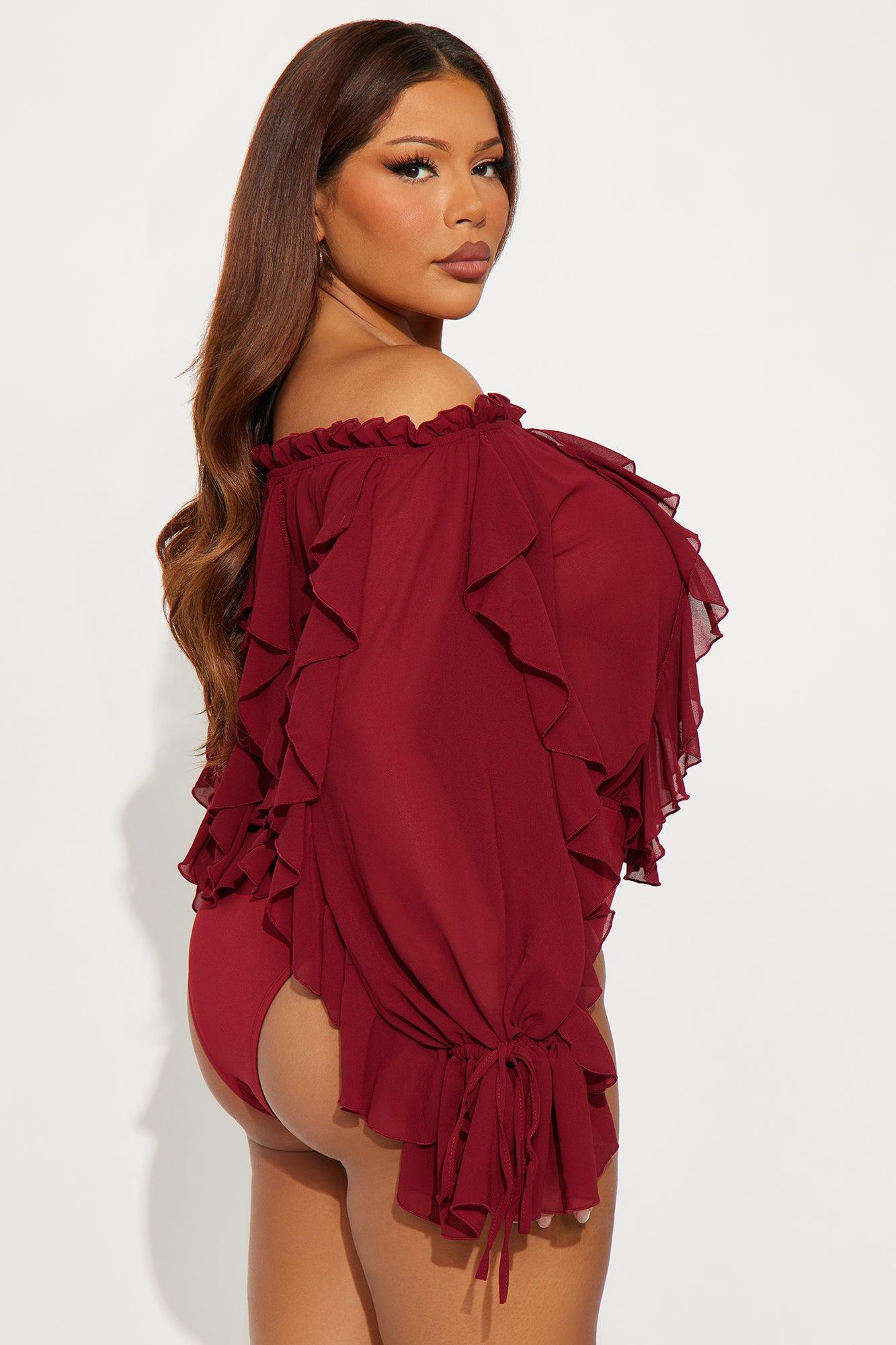 I'm Your Favorite Ruffle Chiffon Bodysuit - Burgundy Female