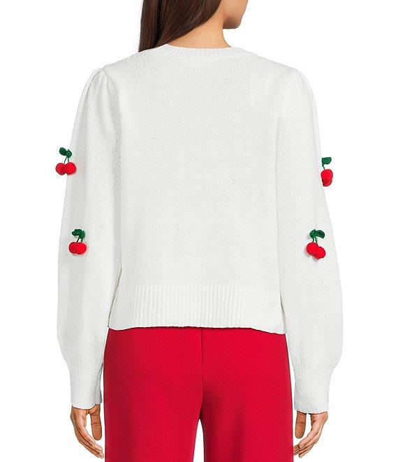 I.N. San Francisco 3D Cherry Long Puff Sleeve Sweater