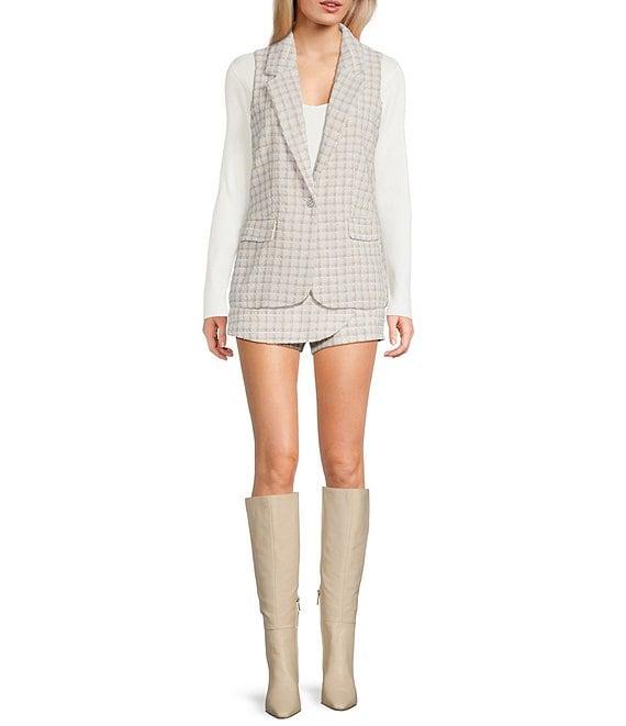 I.N. San Francisco Check Boucle Button Front Coordinating Suiting Vest