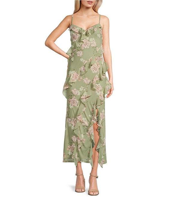 I.N. San Francisco Floral Print Spaghetti Strap Ruffled Slip Dress