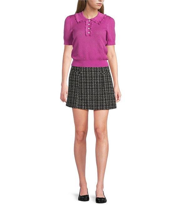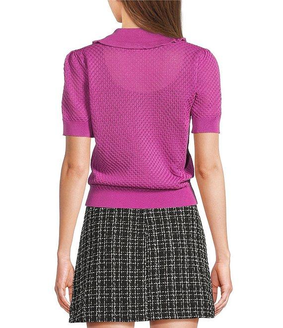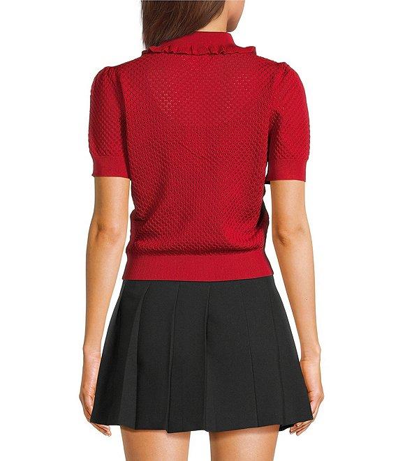 I.N. San Francisco Ruffle Collared Short Sleeve Sweater Top