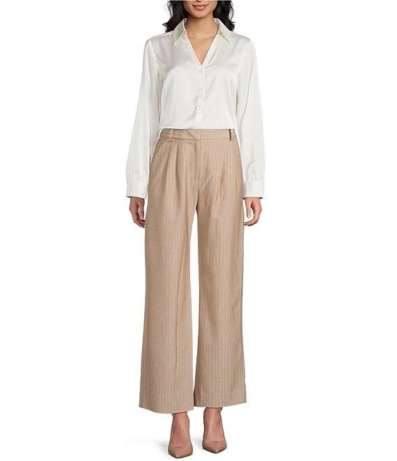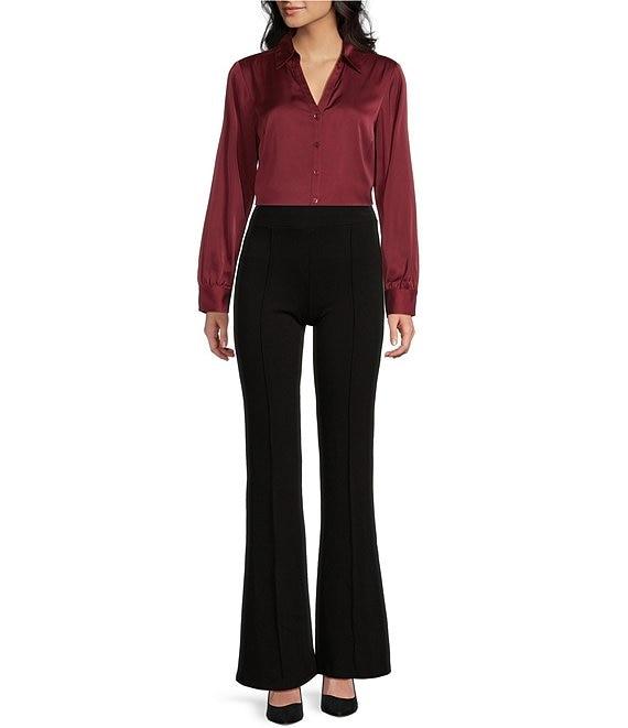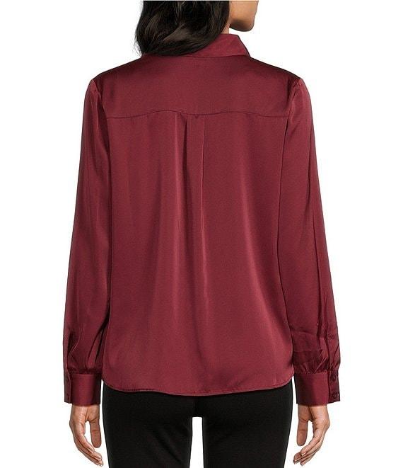I.N. San Francisco Solid Stretch Satin Collared Button Front Long Sleeve Blouse