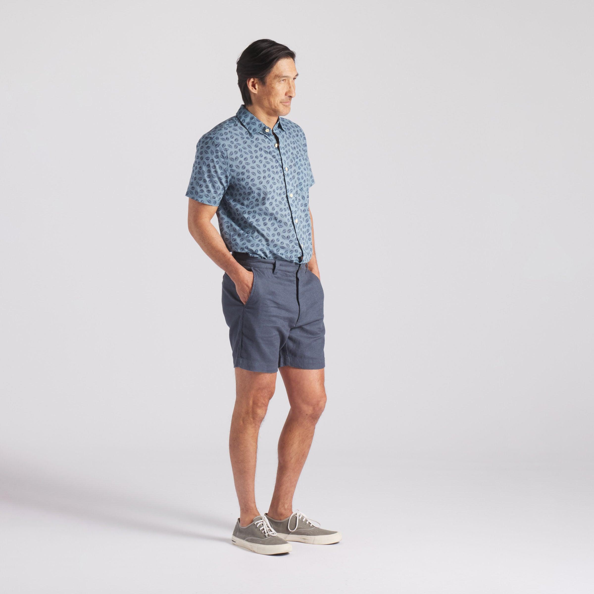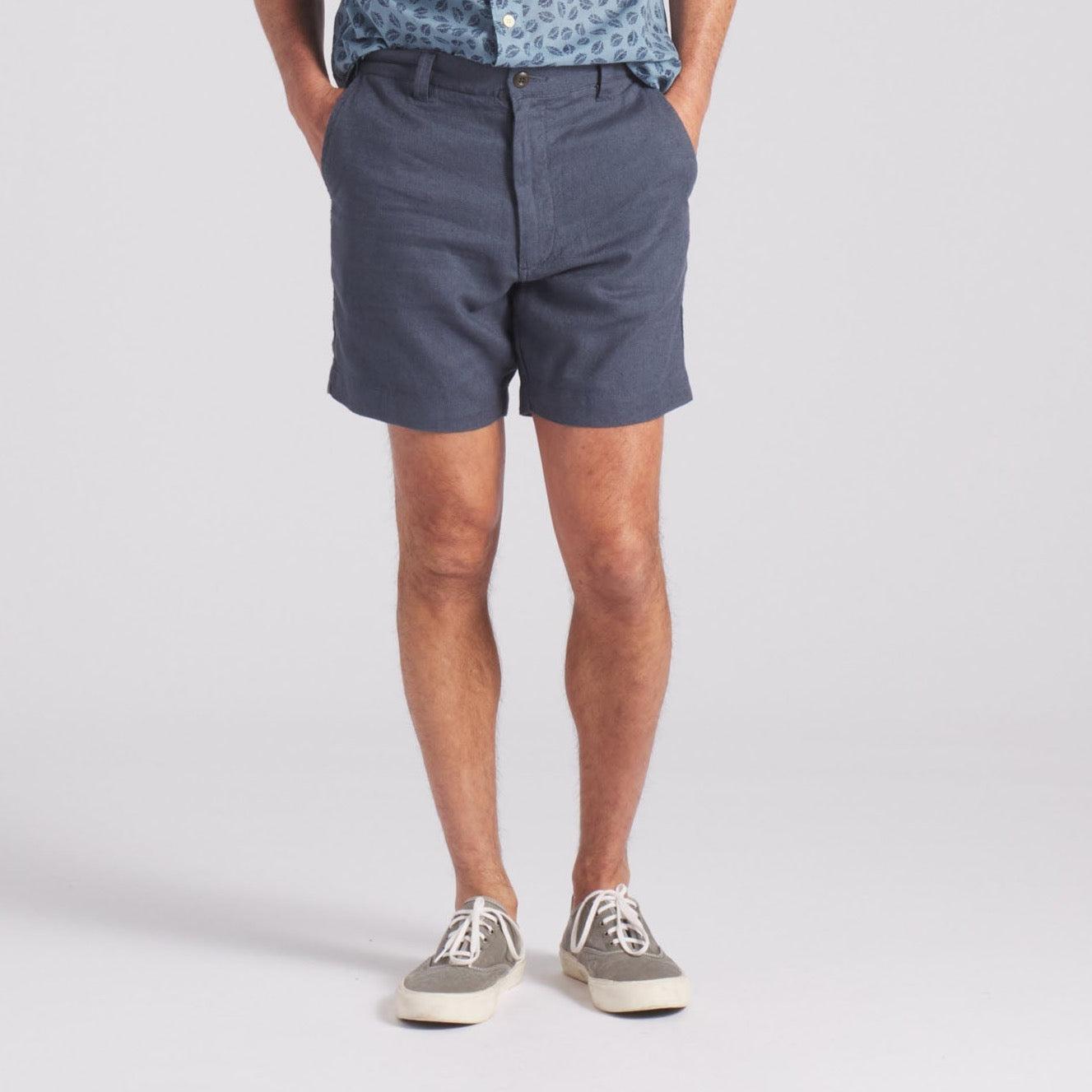 A comfortable blend of linen and viscose, this mid-weight short offers the cool hand of linen with the soft finish of viscose. Detailed with belt loops as well as internal drawcord waistband. Finished with chambray trimmed pocketing and piping. The Model is also wearing: Portofino Featherweight Printed Short Sleeve - Aegean Blue Model: Adrian is wearing size medium and is 6'. ----Details---- 7" inseam Internal self-fabric drawcord Chambray pocketing Piped seams Off seam pockets 2 rear button through besom pockets Imported ----Materials---- 55% Linen and 45% Viscose ----Size & Fit---- Measuring Method: All measurements are in inches and based on a “flat” garment, as shown below. For comparison with one of your existing garments, please lay garment on a flat surface and follow the key measurement points. ----Care---- Machine Wash Cold Separately Do Not Soak Before Washing Do Not Bleach Remove Promptly Tumble Dry Low Or Hang Dry In Shaded Area Cool Iron If Necessary