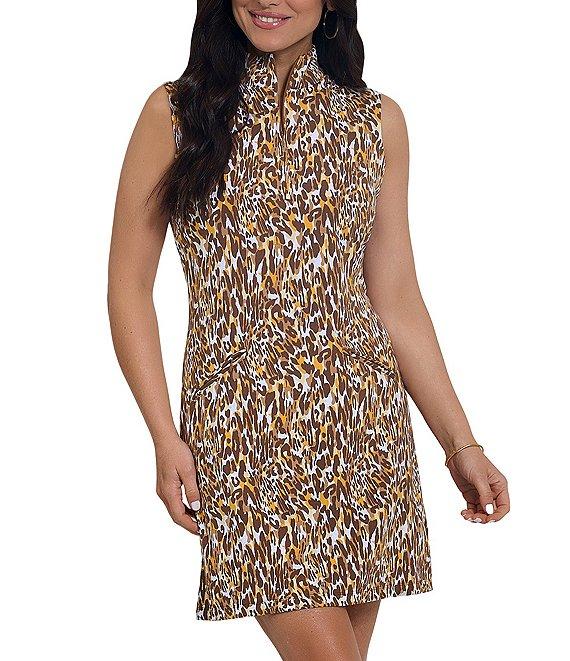 From IBKUL, this dress features: Patented Icefil technology fabrication Animal print Mock neckline Sleeveless Pull-on construction Zip front placket Lightweight UPF 50+ protection Anti-microbial Straight hemline Above the knee length Nylon/Polyurethane Machine wash cold, Tumble dry low#back; Imported.